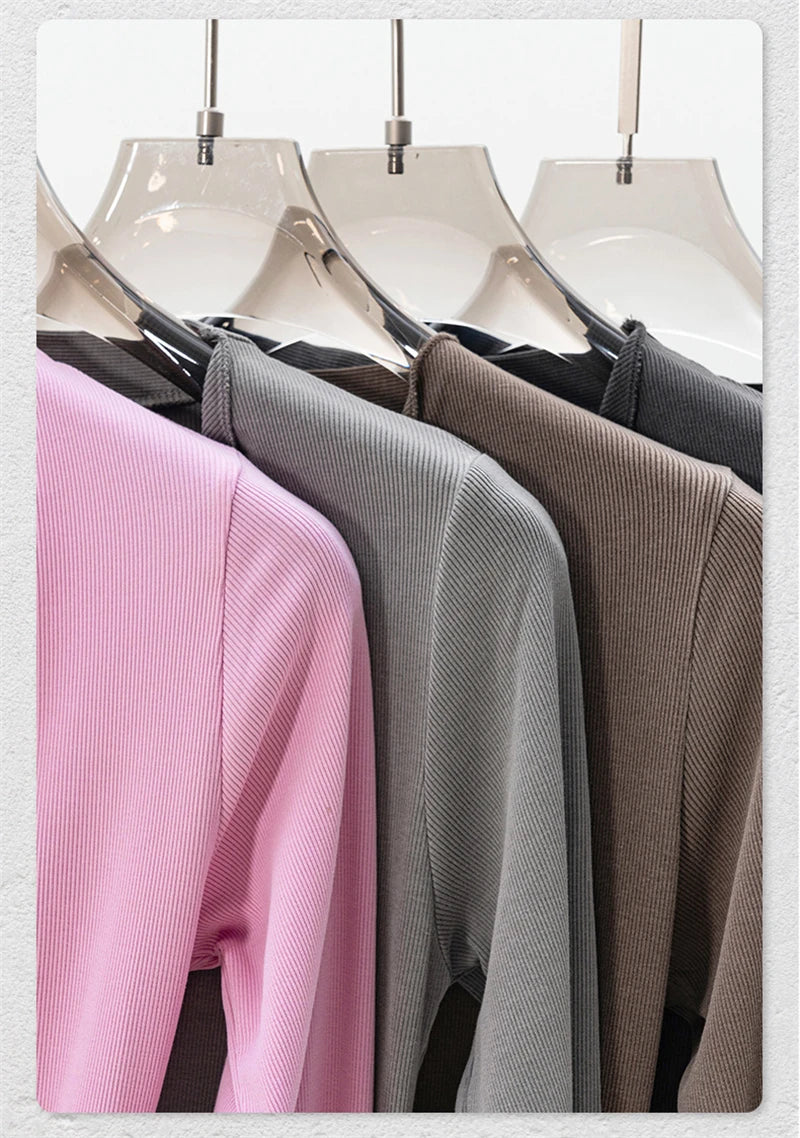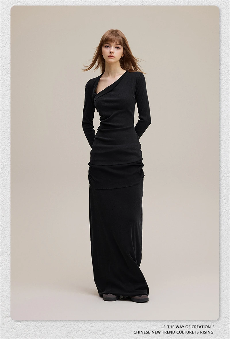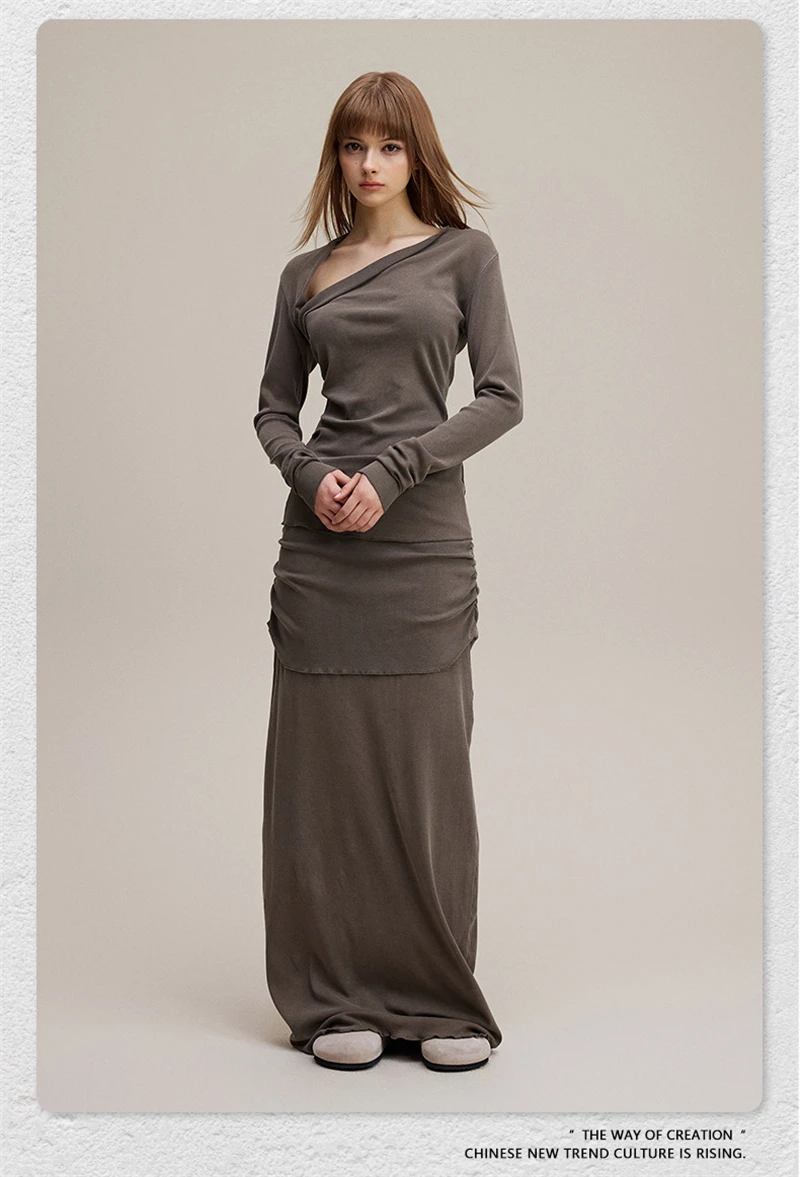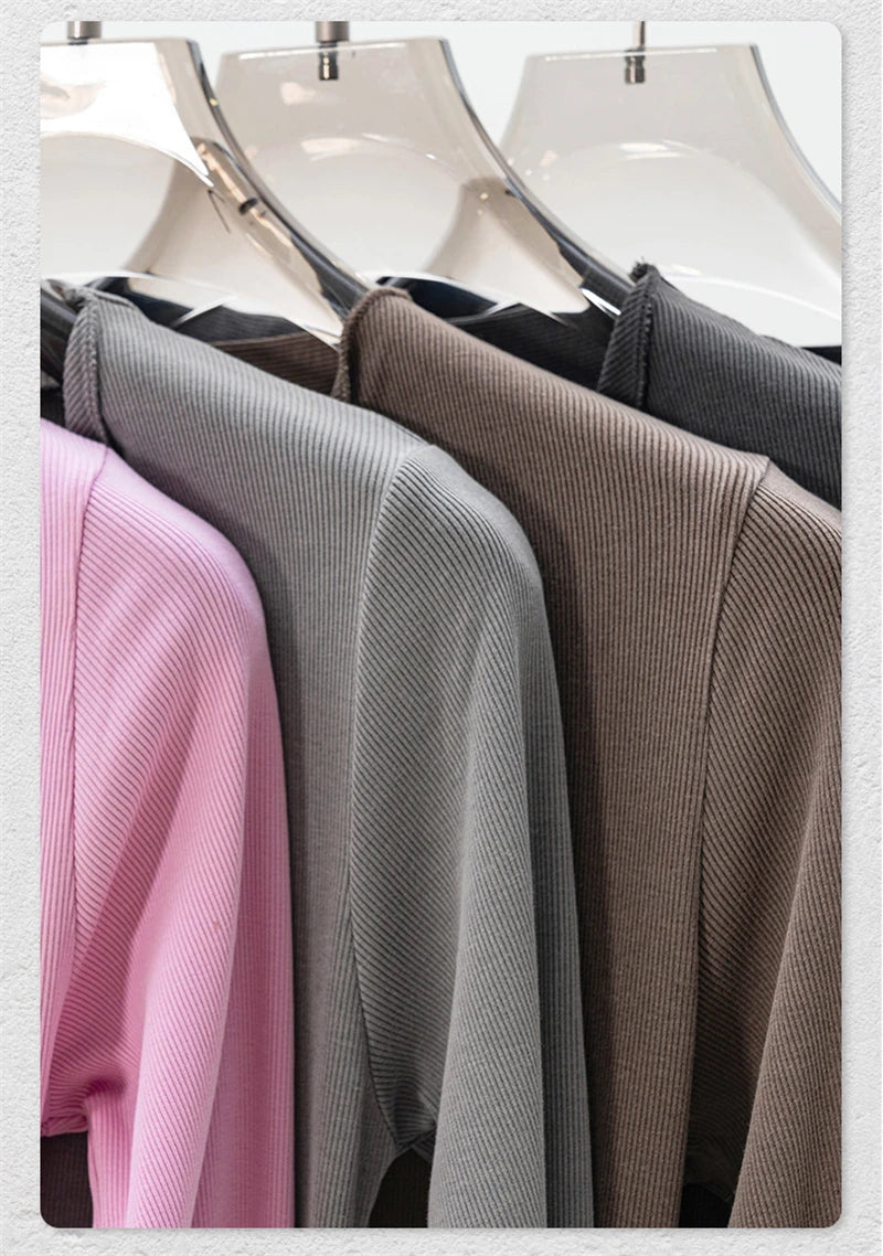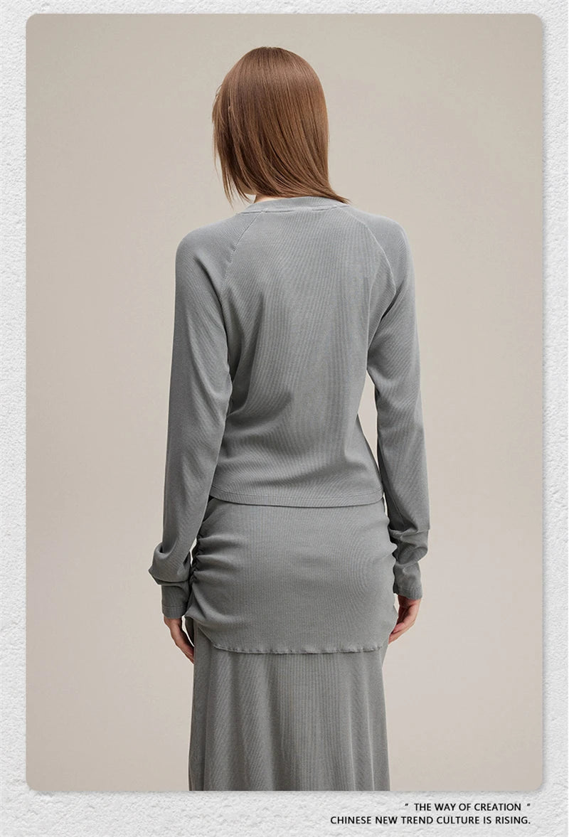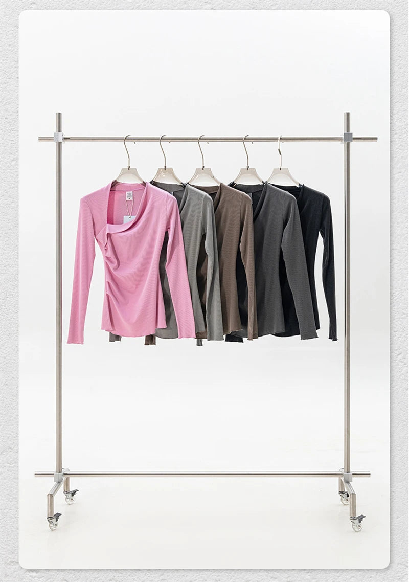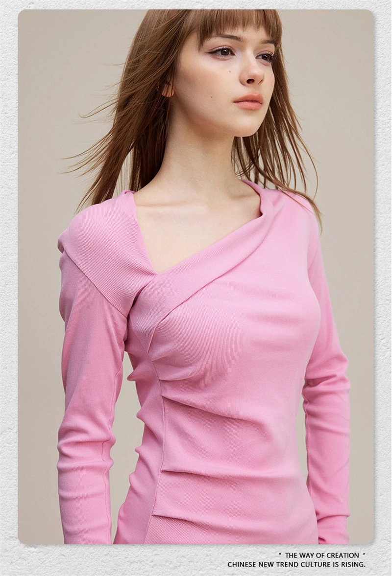 ZODF Retro Sexy Women Autumn Washed 275gsm T Shirt Ladies Girls Distressed Side Pleated Full Sleeve T-Shirts Tees HY1107