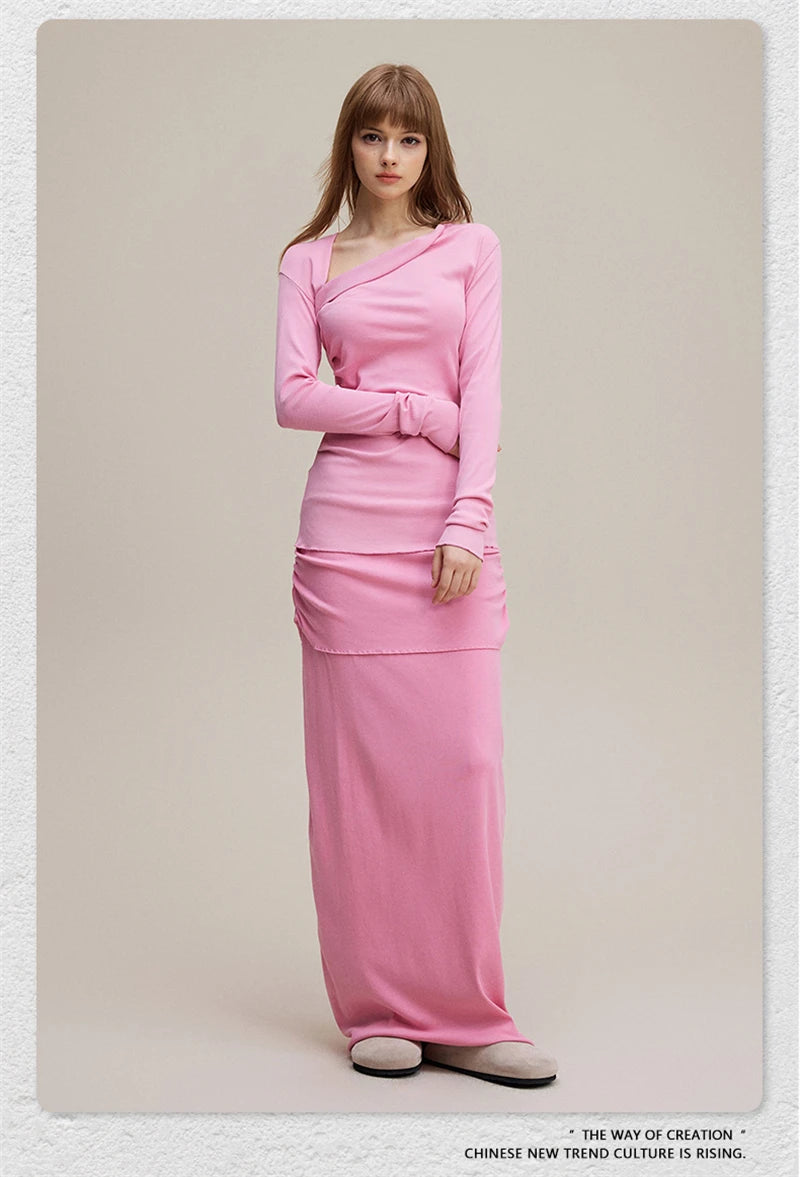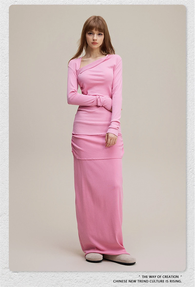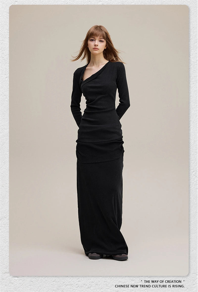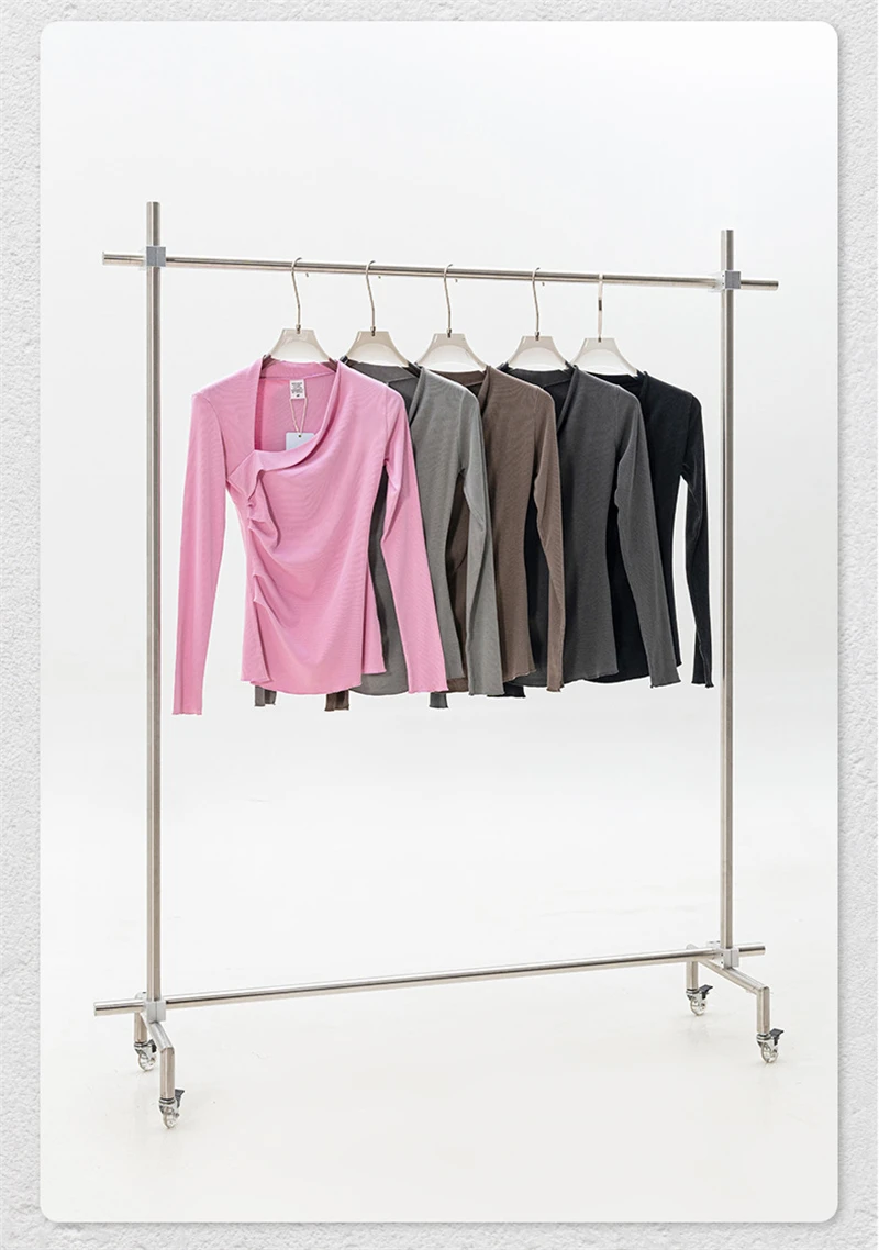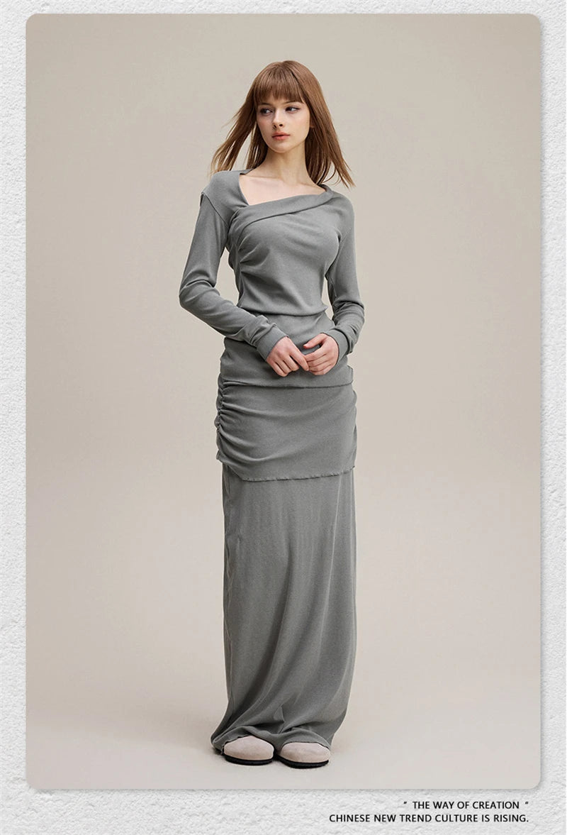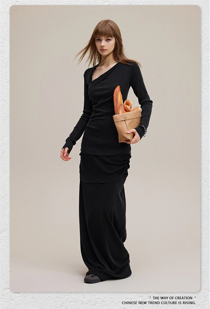 ZODF Retro Sexy Women Autumn Washed 275gsm T Shirt Ladies Girls Distressed Side Pleated Full Sleeve T-Shirts Tees HY1107
