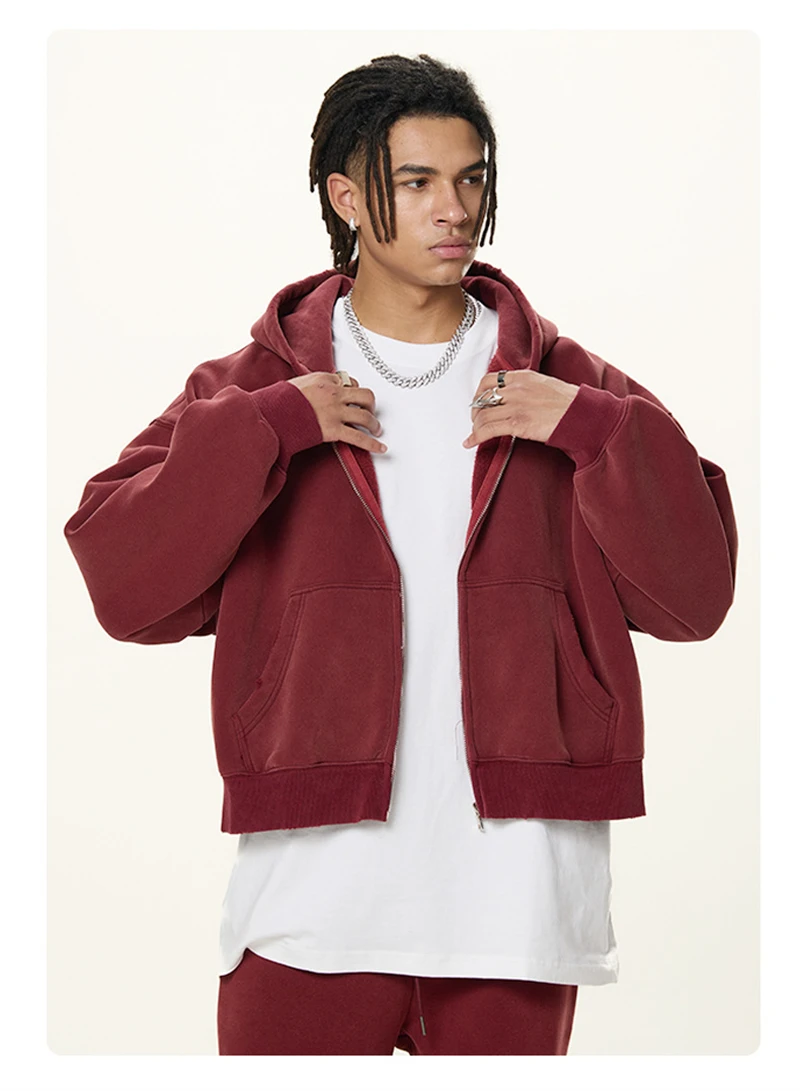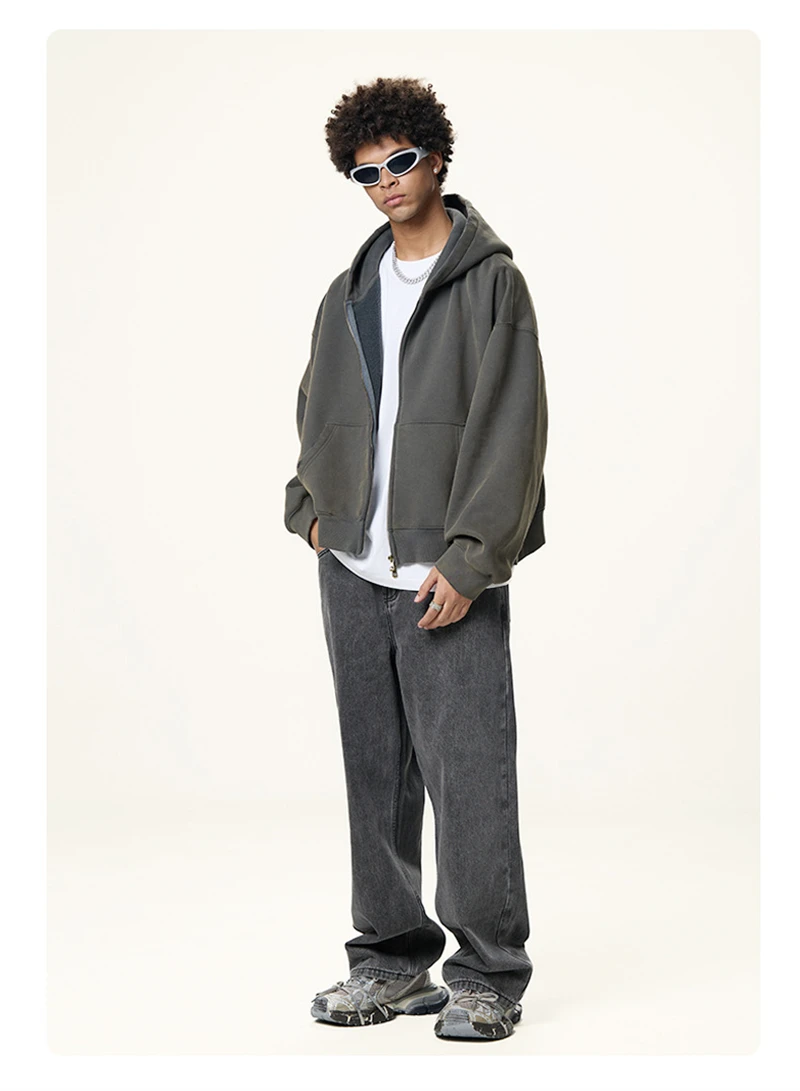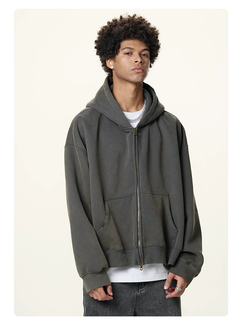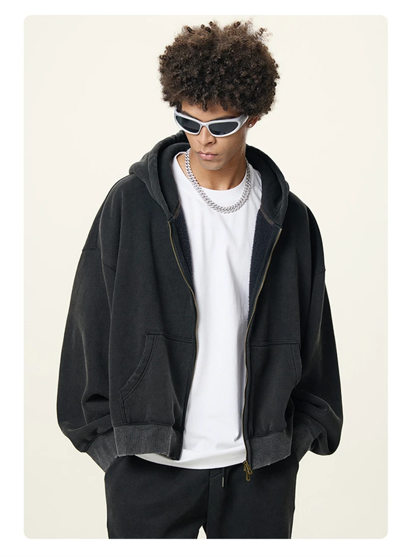 ZODF Retro Winter 350gsm Washed Zipper Fleece Hoodies For Men Unisex Loose Fit Boxy Style Thick Warm Hooded Coat Outfits HY0042