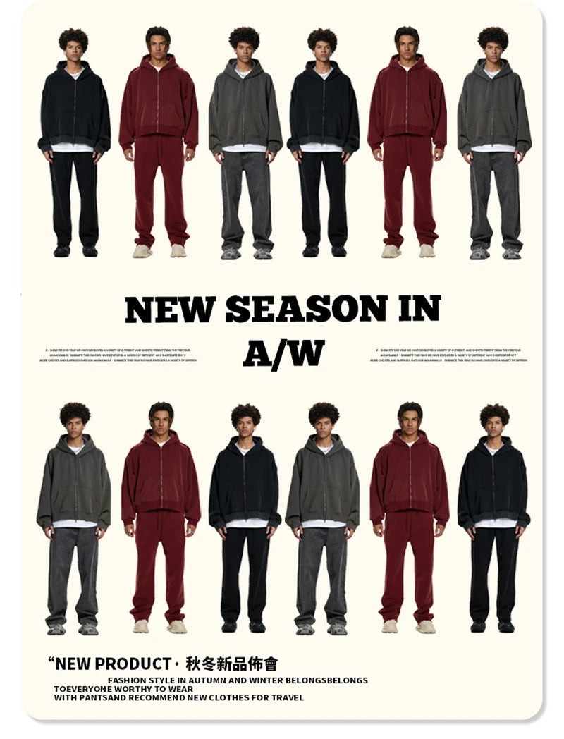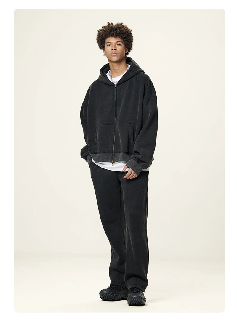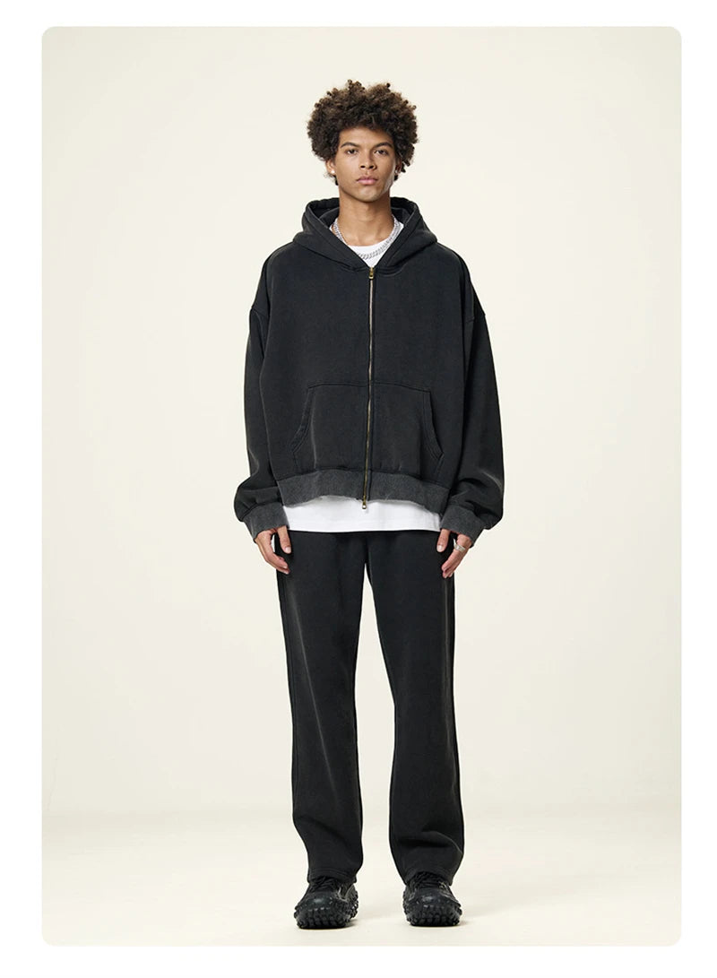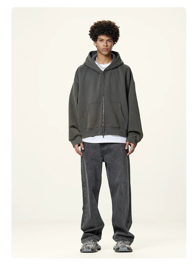 ZODF Retro Winter 350gsm Washed Zipper Fleece Hoodies For Men Unisex Loose Fit Boxy Style Thick Warm Hooded Coat Outfits HY0042