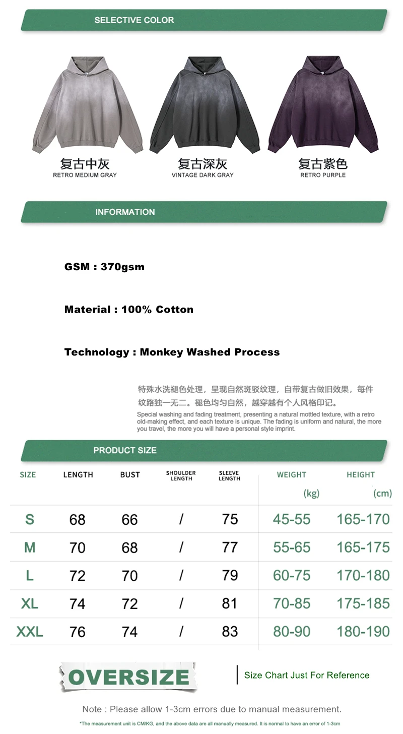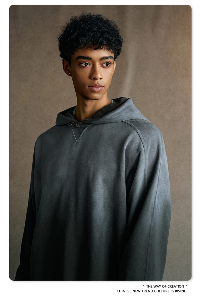 ZODF Retro Winter 370gsm Monkey Washed Hoodies For Man Unisex Oversized Off Shoulder 100% Cotton Hooded Coats Pullovers HY1136