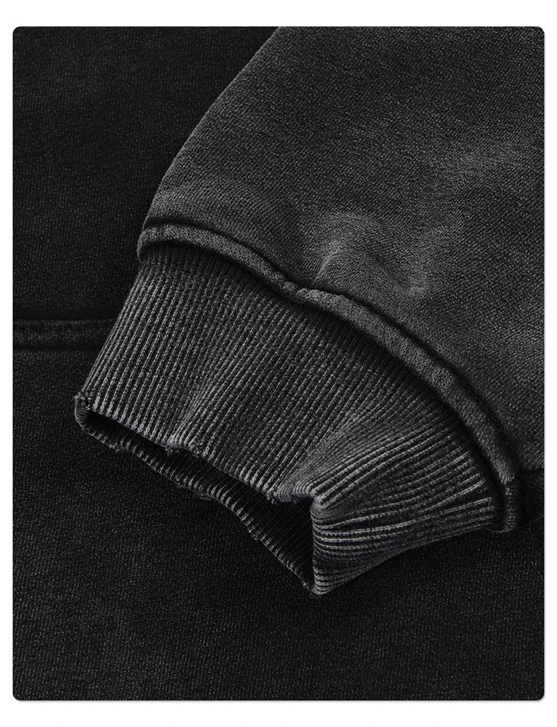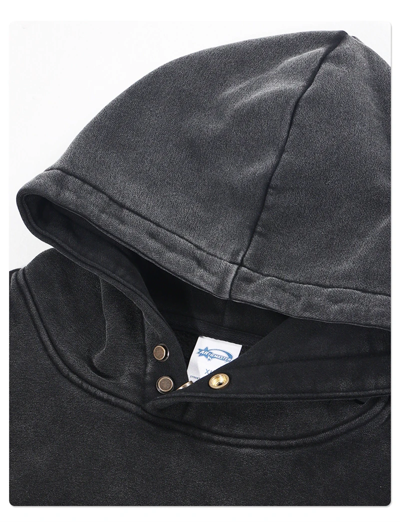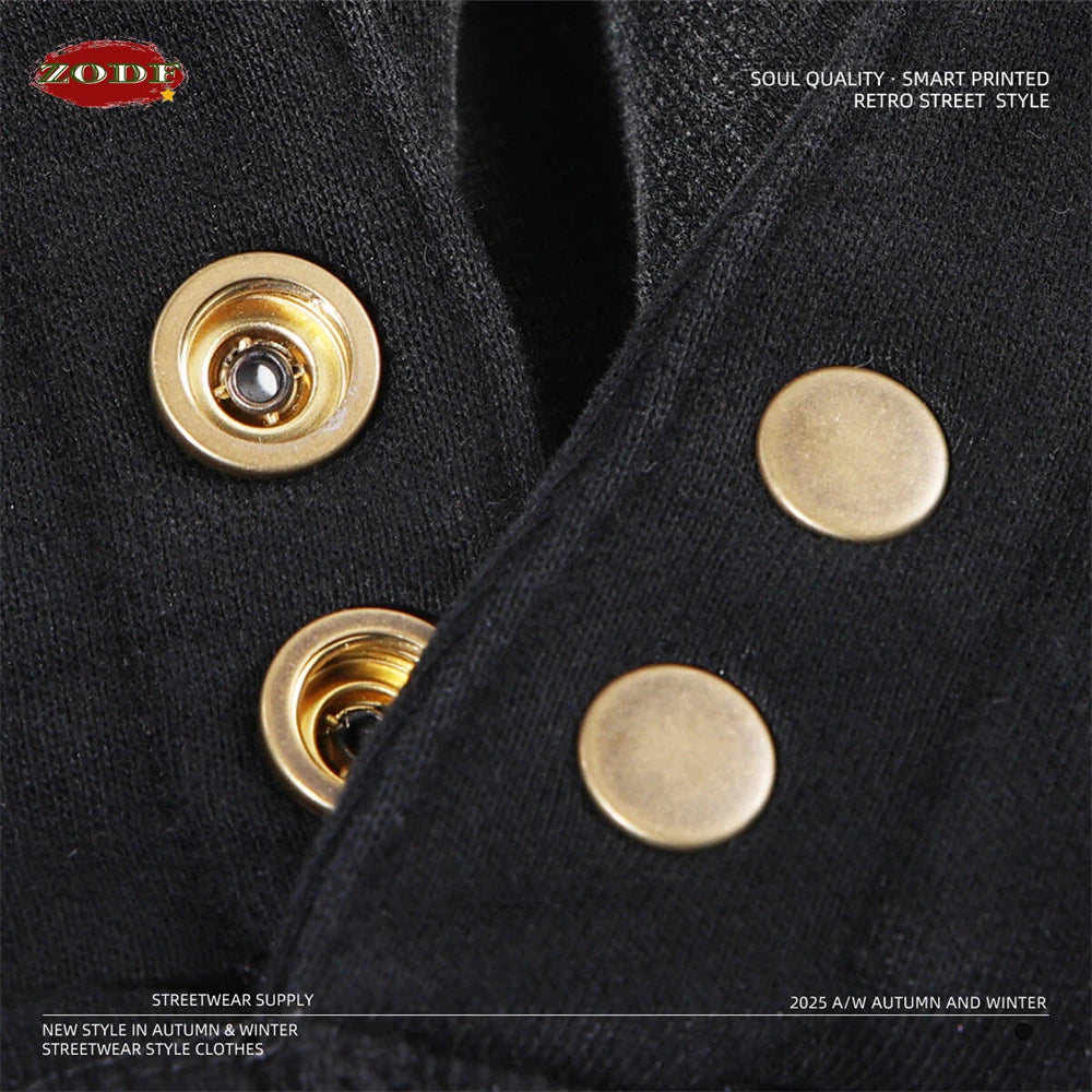 ZODF Retro Winter Washed 370gsm Man's Fleece Hoodie Unisex Distressed Thick Warm Buttons Hooded Pullovers Coats HY1169