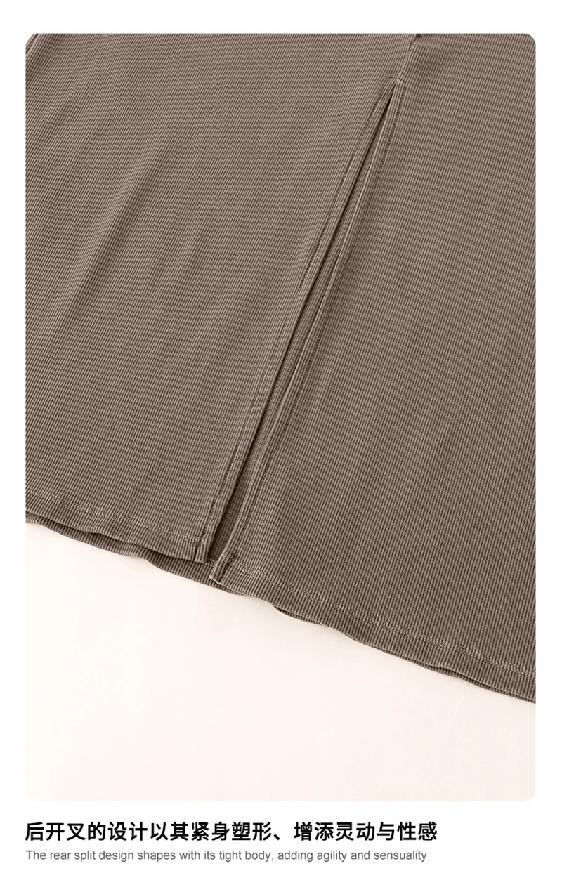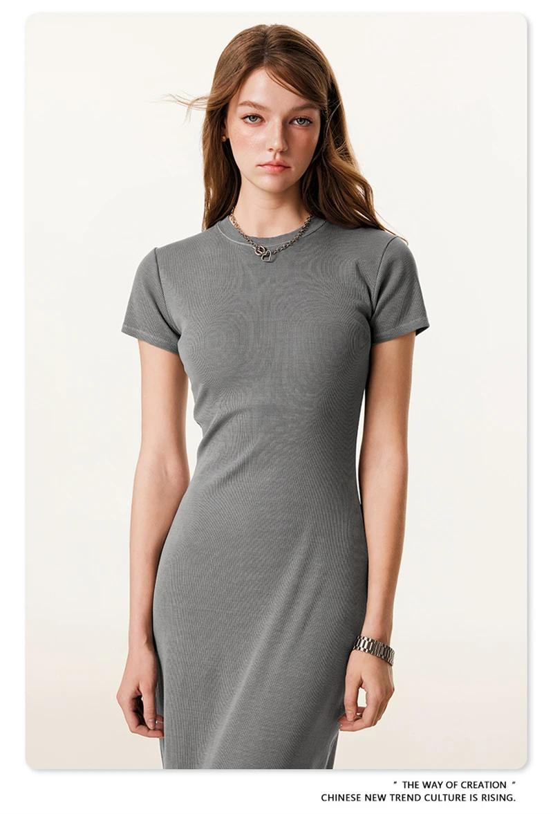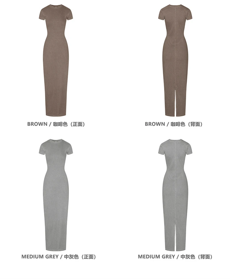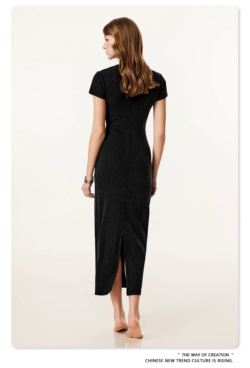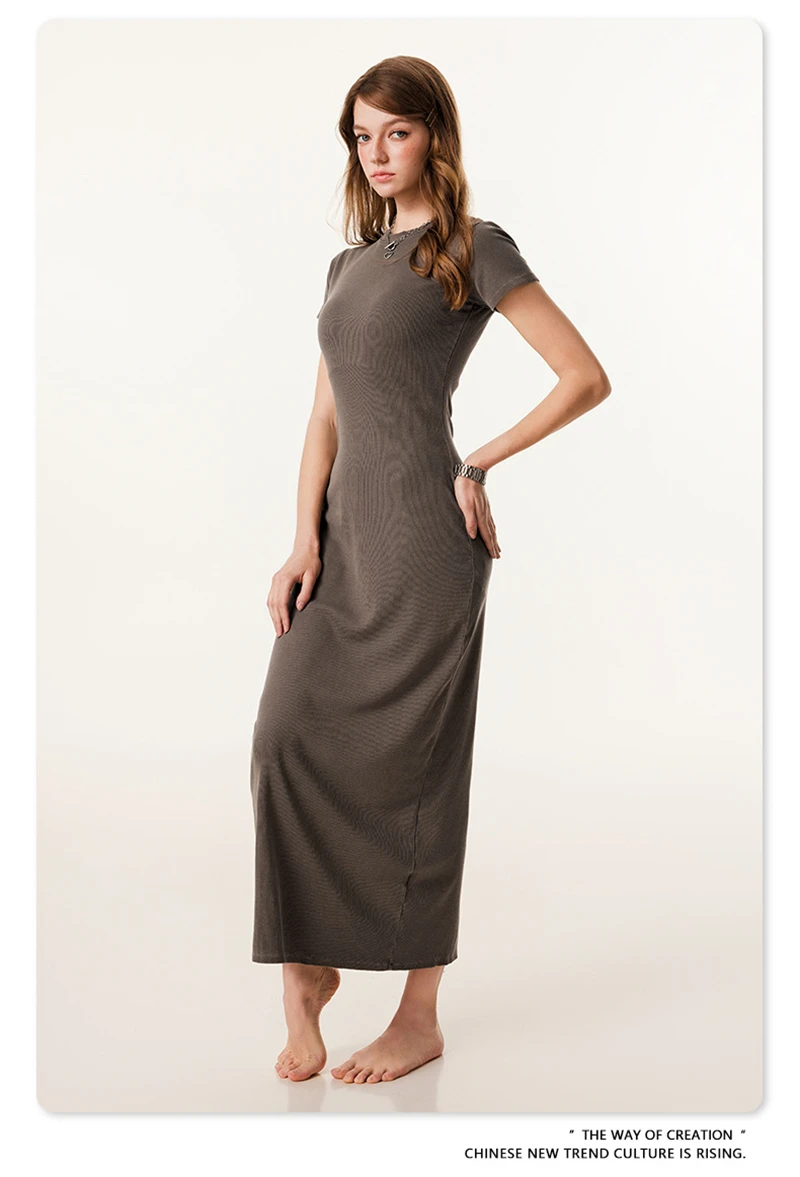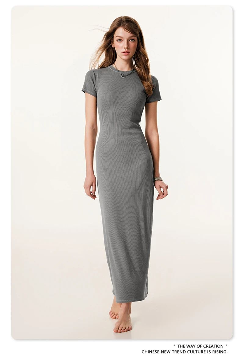 ZODF Sexy 2025 Spring Women 275gsm Long Dress Female Girls O Neck Washed Distressed Slim Slit Fit Dresses HY1008