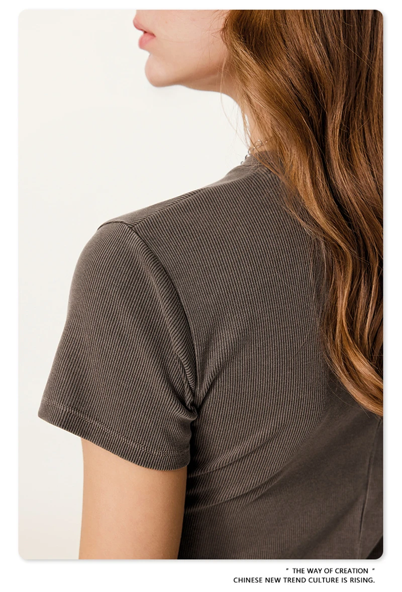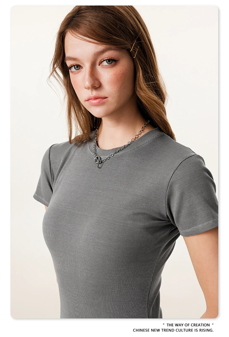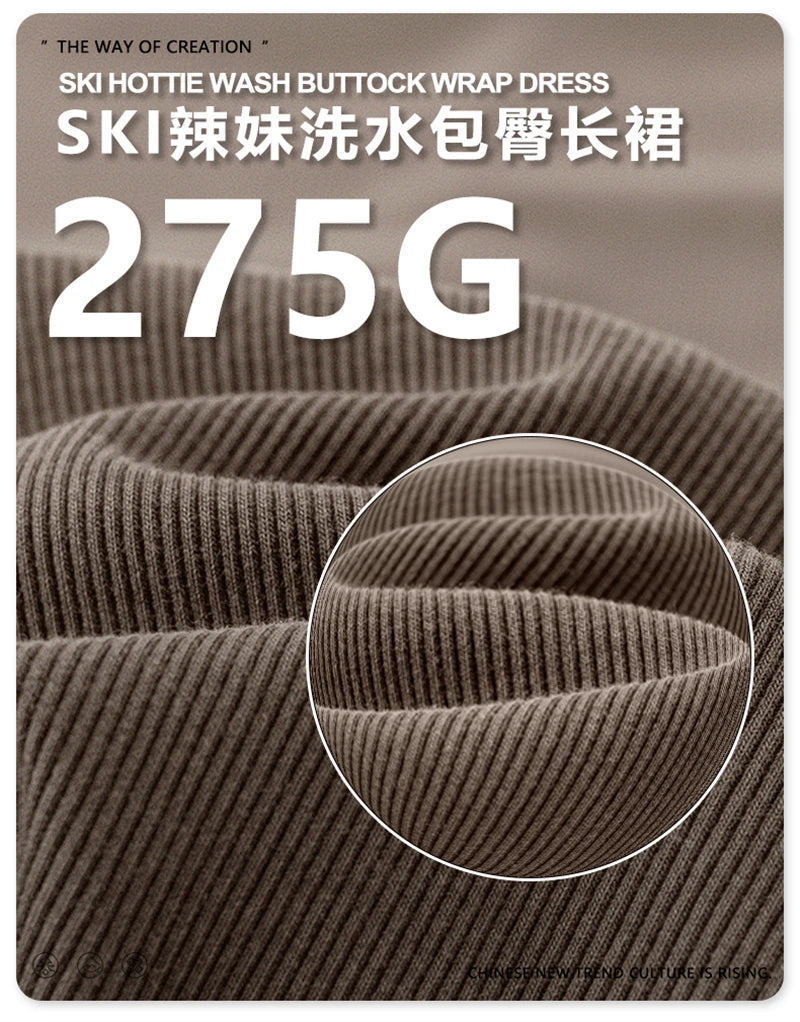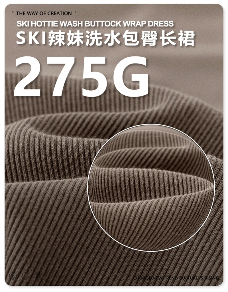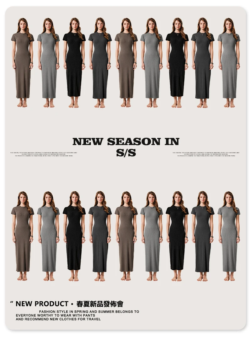 ZODF Sexy 2025 Spring Women 275gsm Long Dress Female Girls O Neck Washed Distressed Slim Slit Fit Dresses HY1008