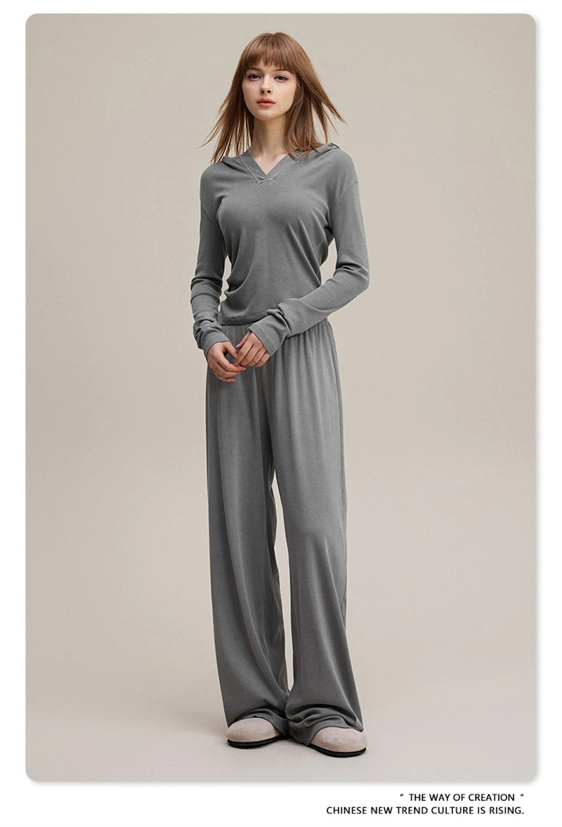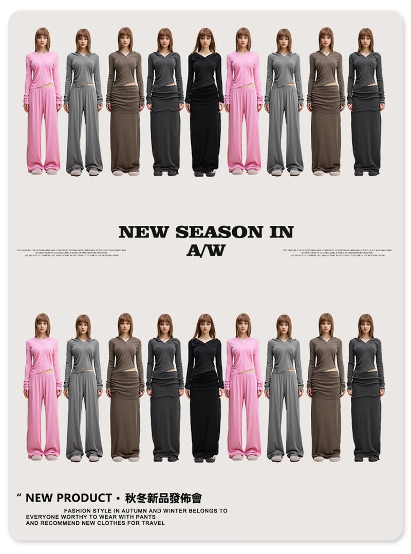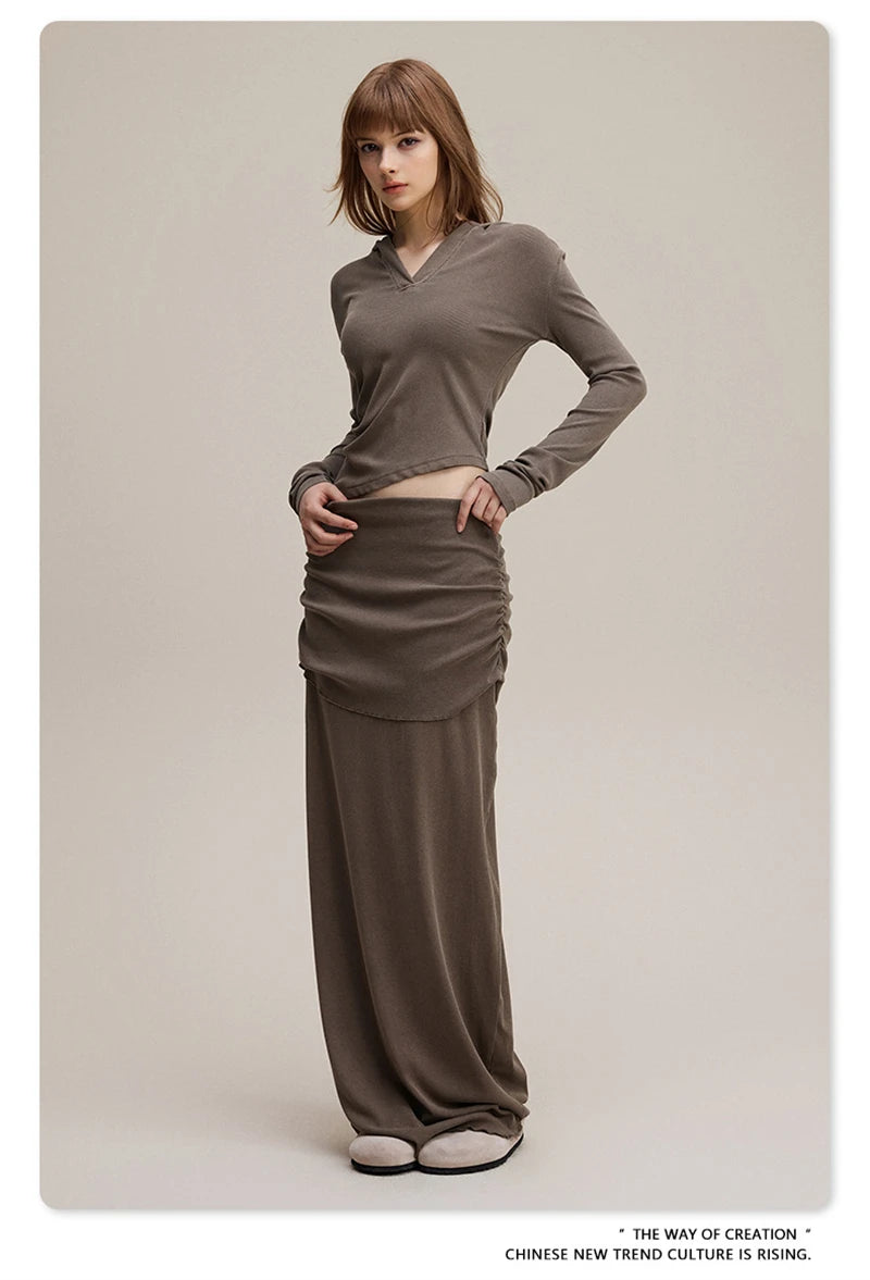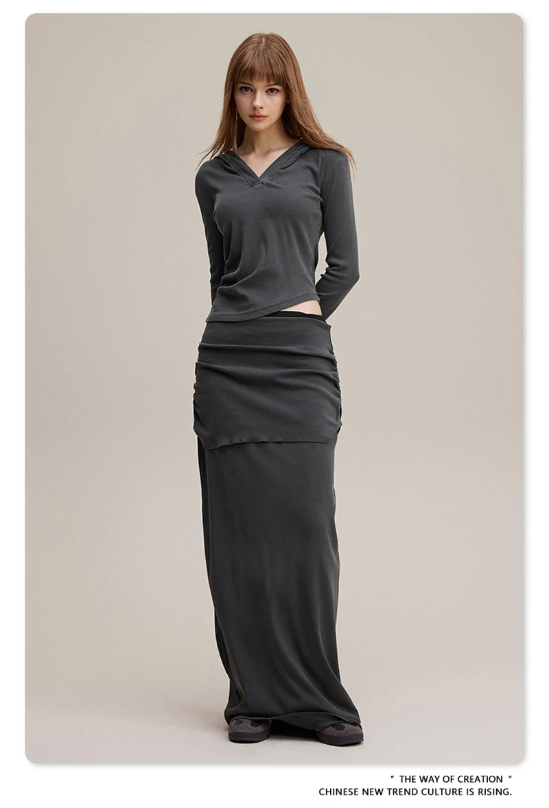 ZODF Sexy Women Autumn Washed 275gsm Hooded T Shirt Ladies Girls Slim Fit Distressed Side Pleated T-Shirts Tees HY1149