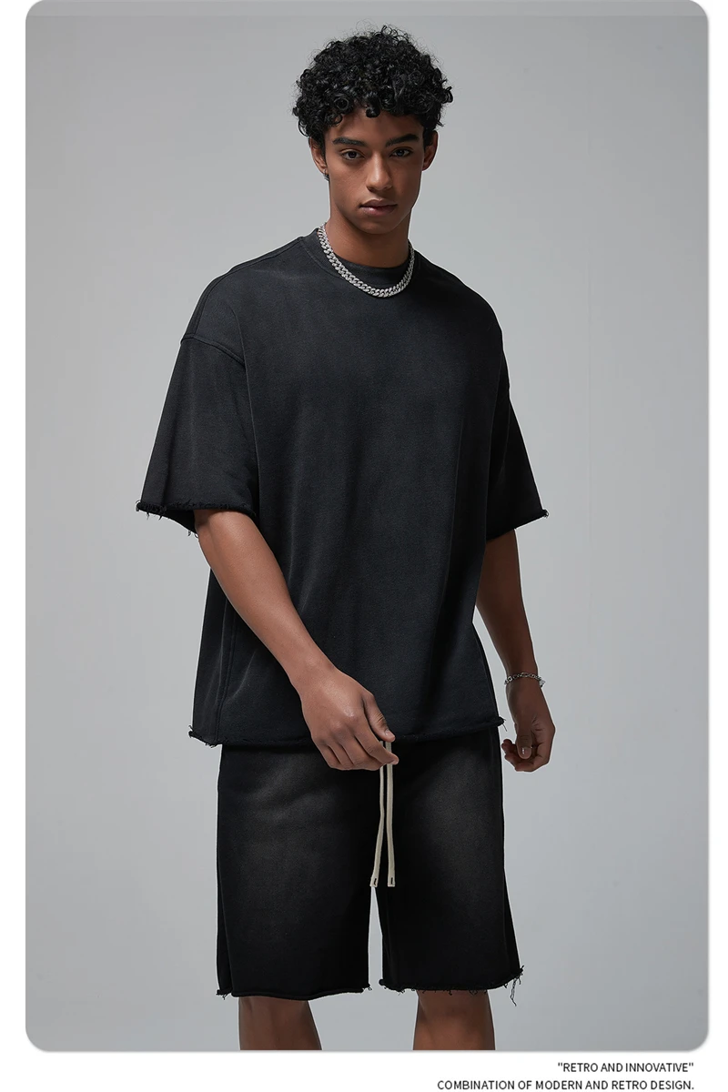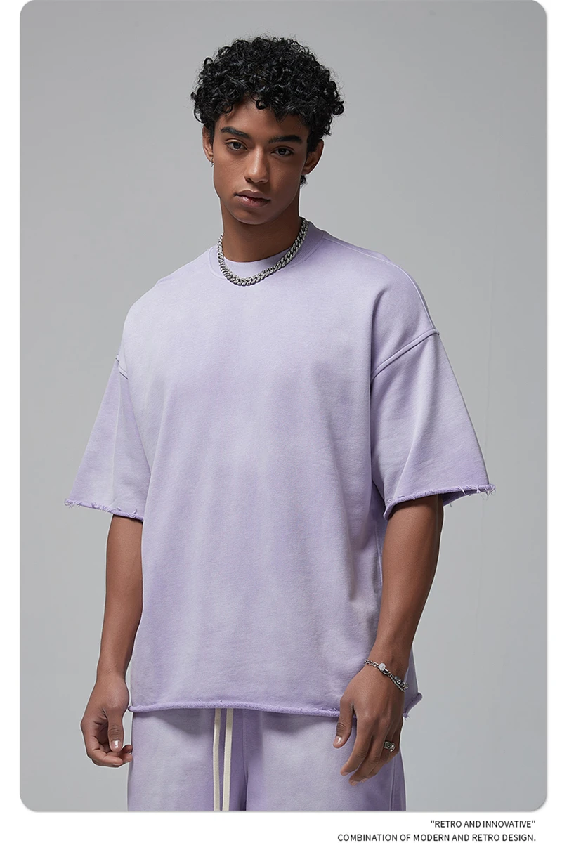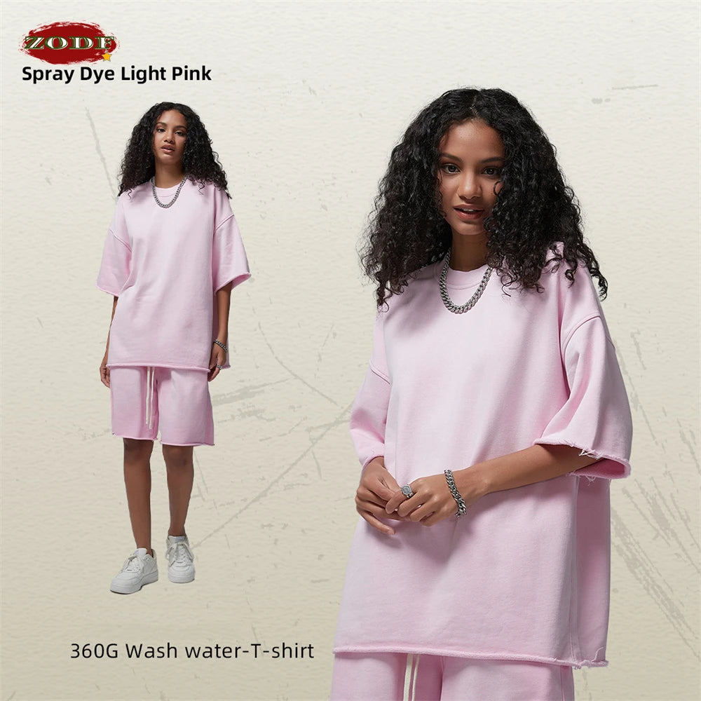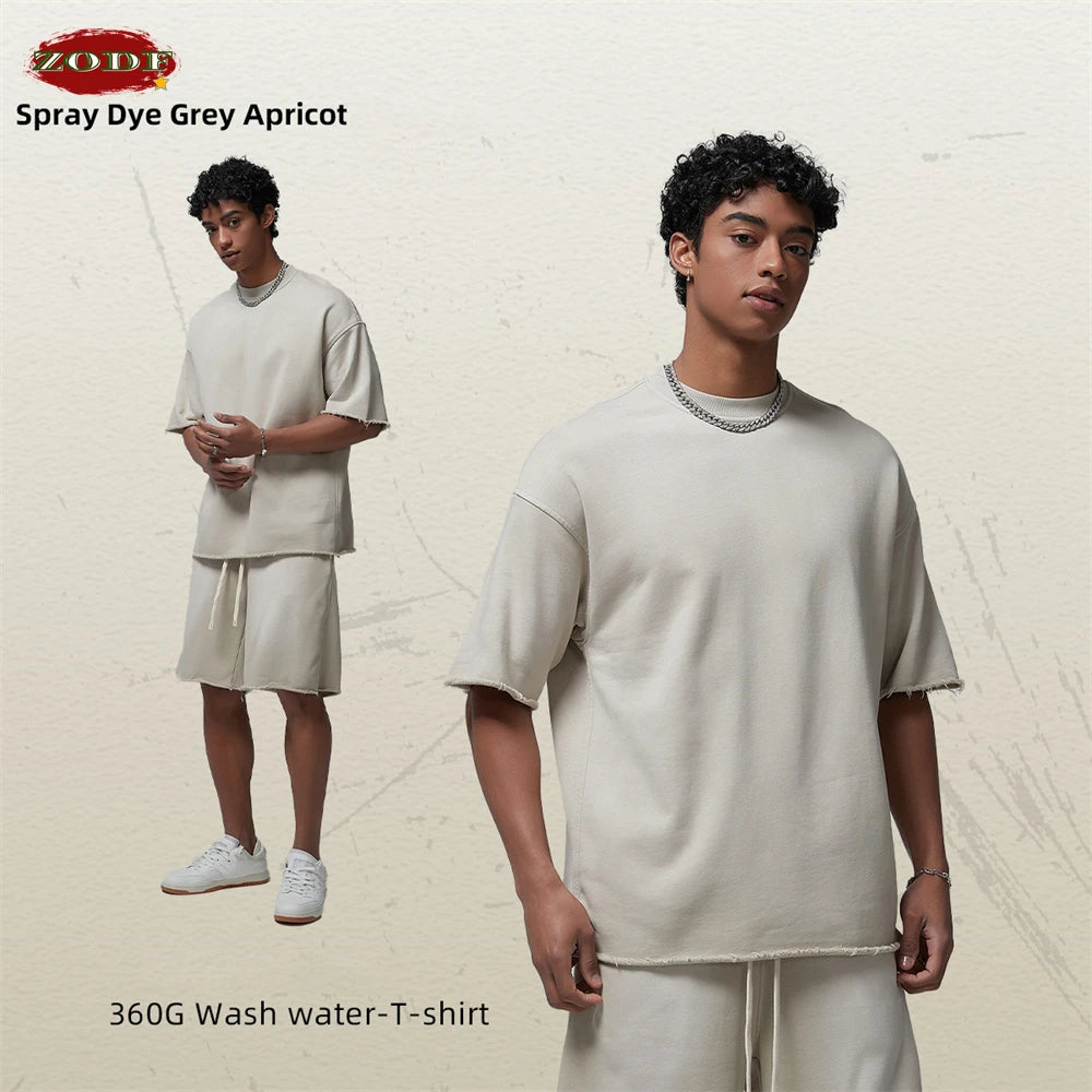 ZODF Spring Summer Men Washed Spray Dyeing T Shirts Unisex Heavy Weight Plush Distressed 360gsm T-Shirt Brand Tops HY0780