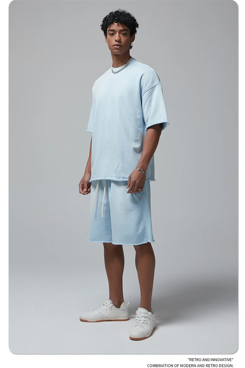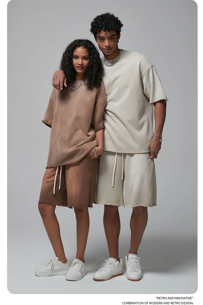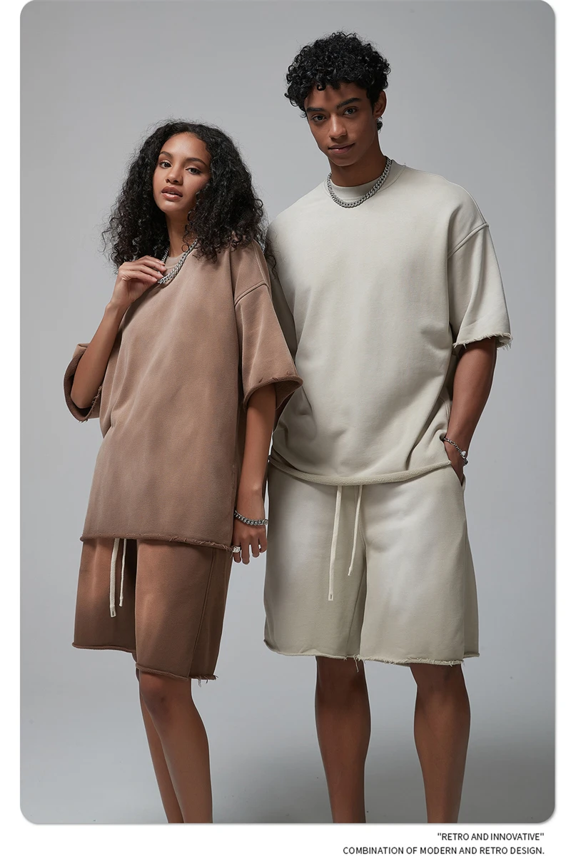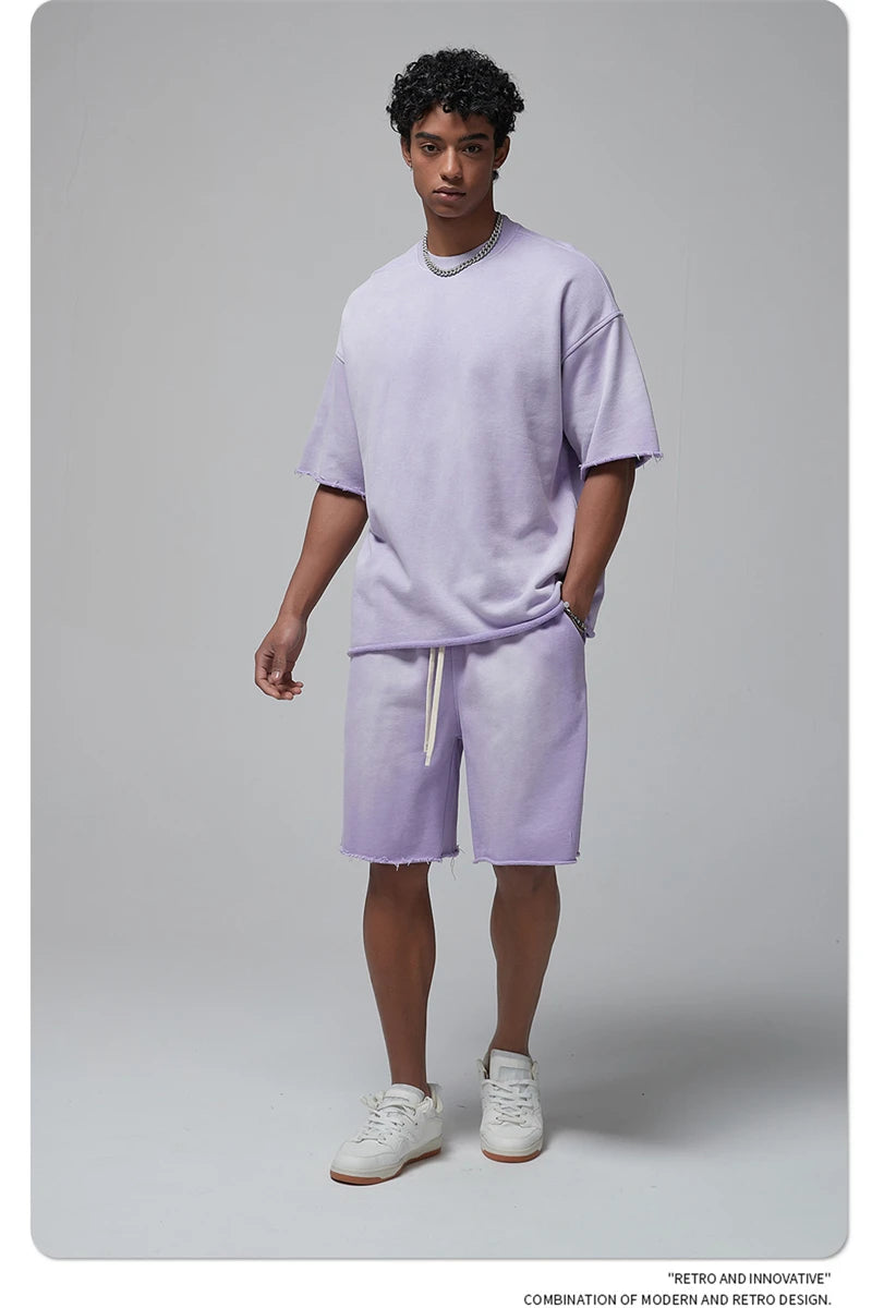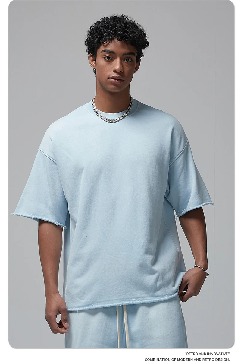 ZODF Spring Summer Men Washed Spray Dyeing T Shirts Unisex Heavy Weight Plush Distressed 360gsm T-Shirt Brand Tops HY0780