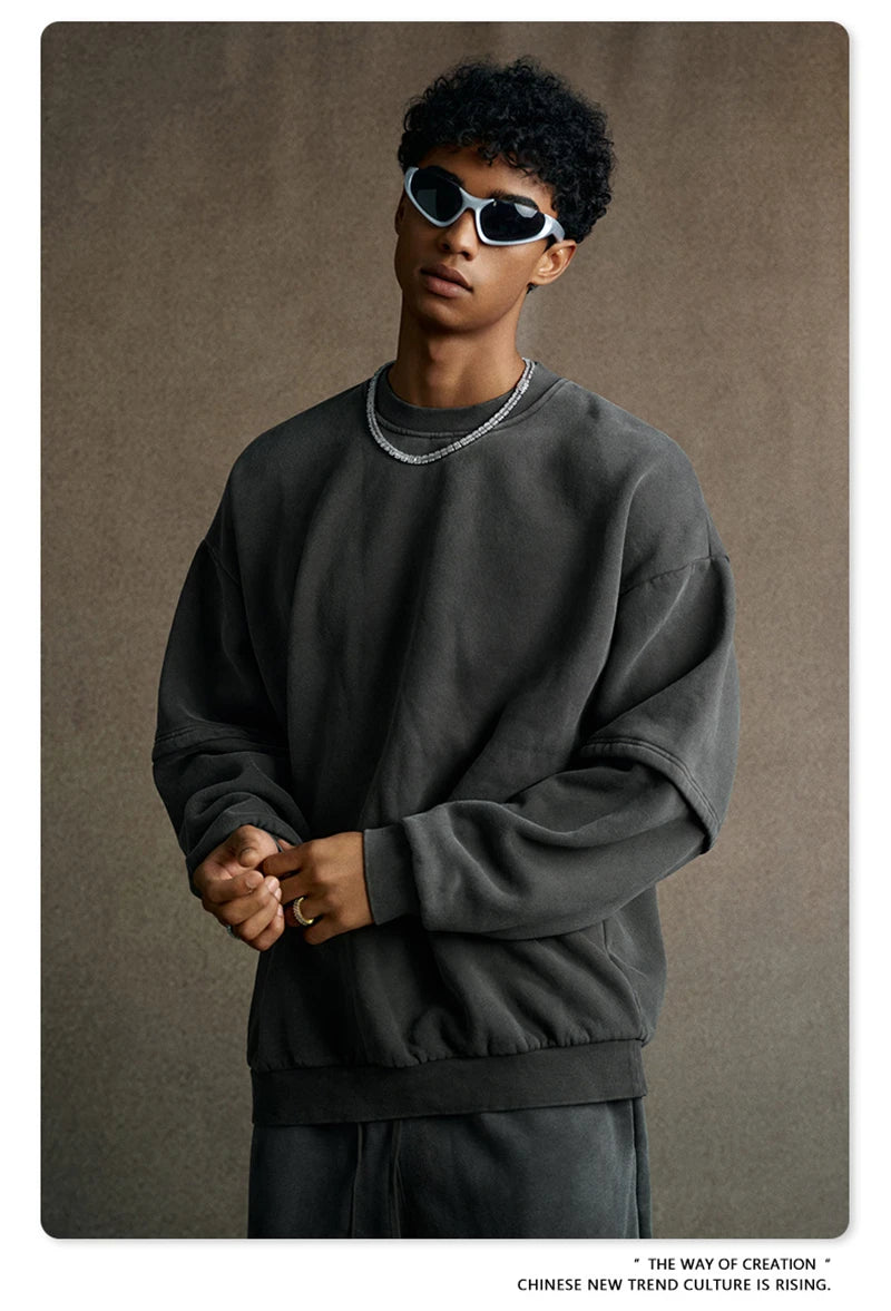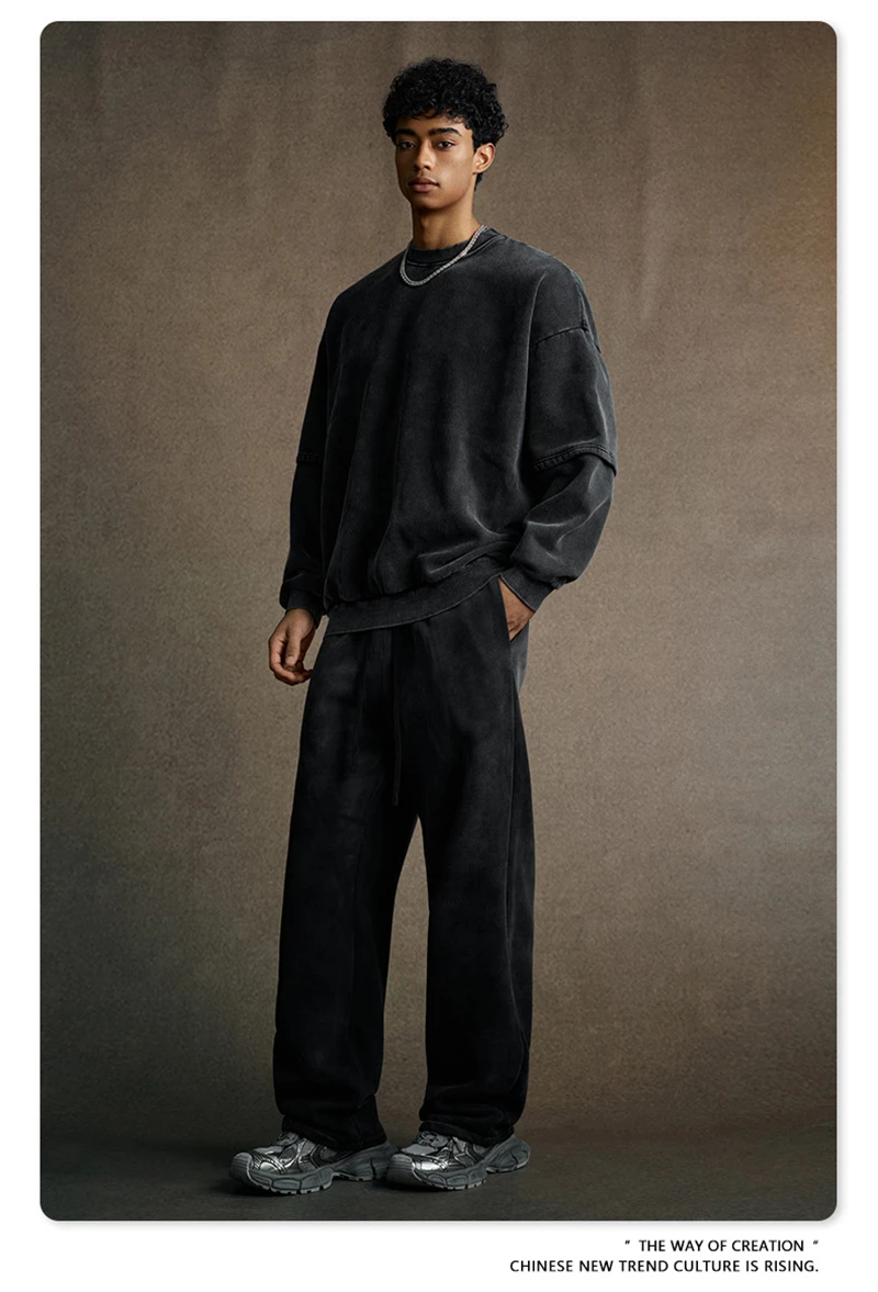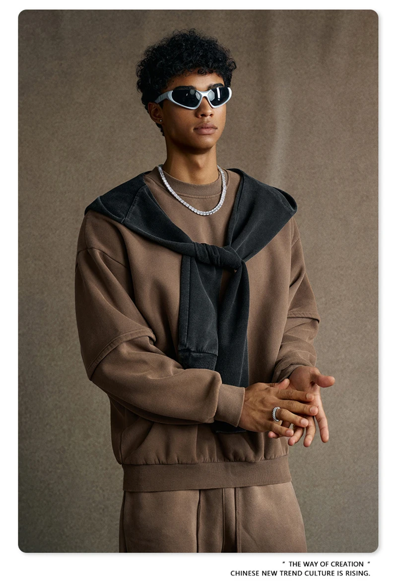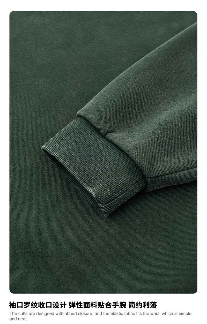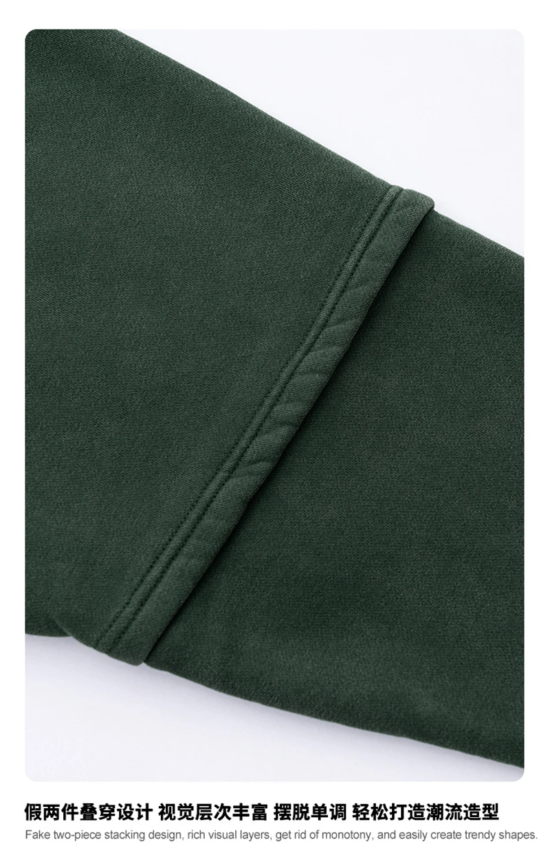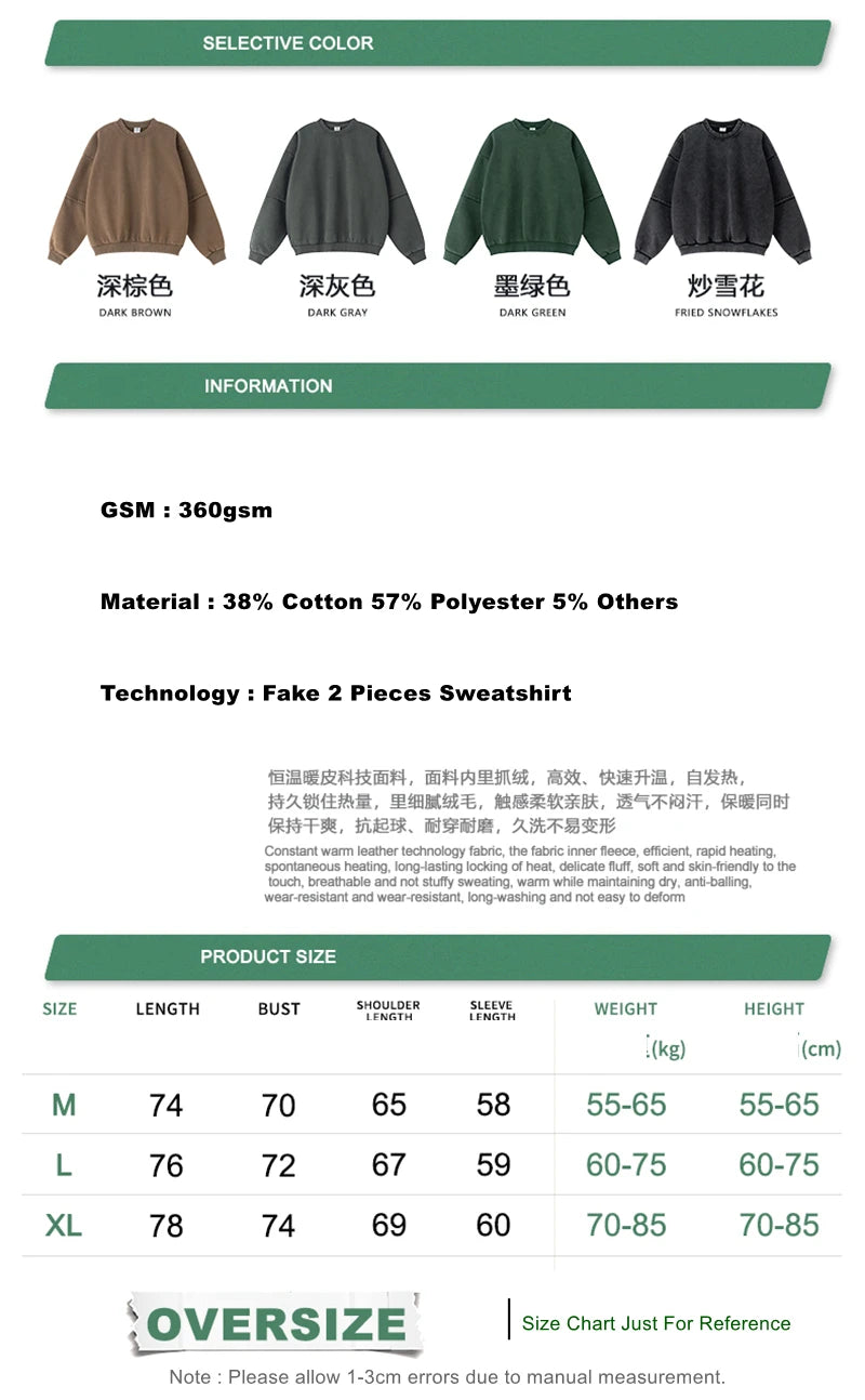 ZODF Trendy 2025 Winter Man 360gsm Washed Fleece Hoodies Unisex Patchwork Loose Fake 2 Pieces Knitted O Neck Sweatshirts HY1089