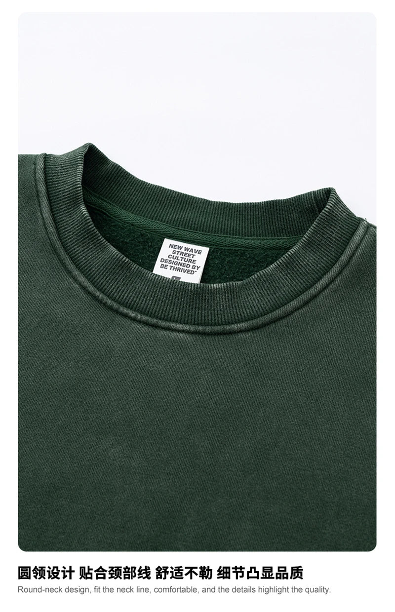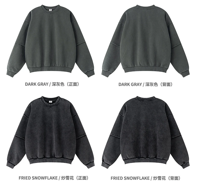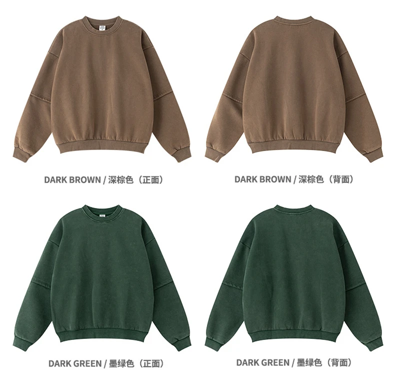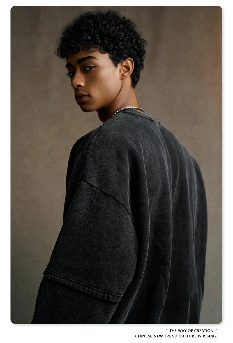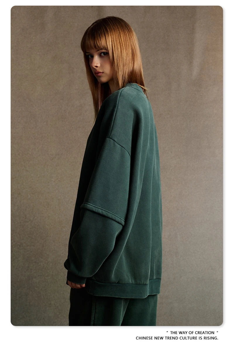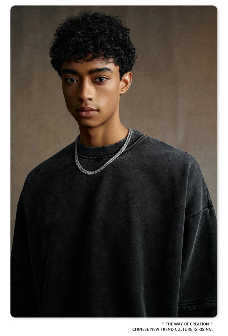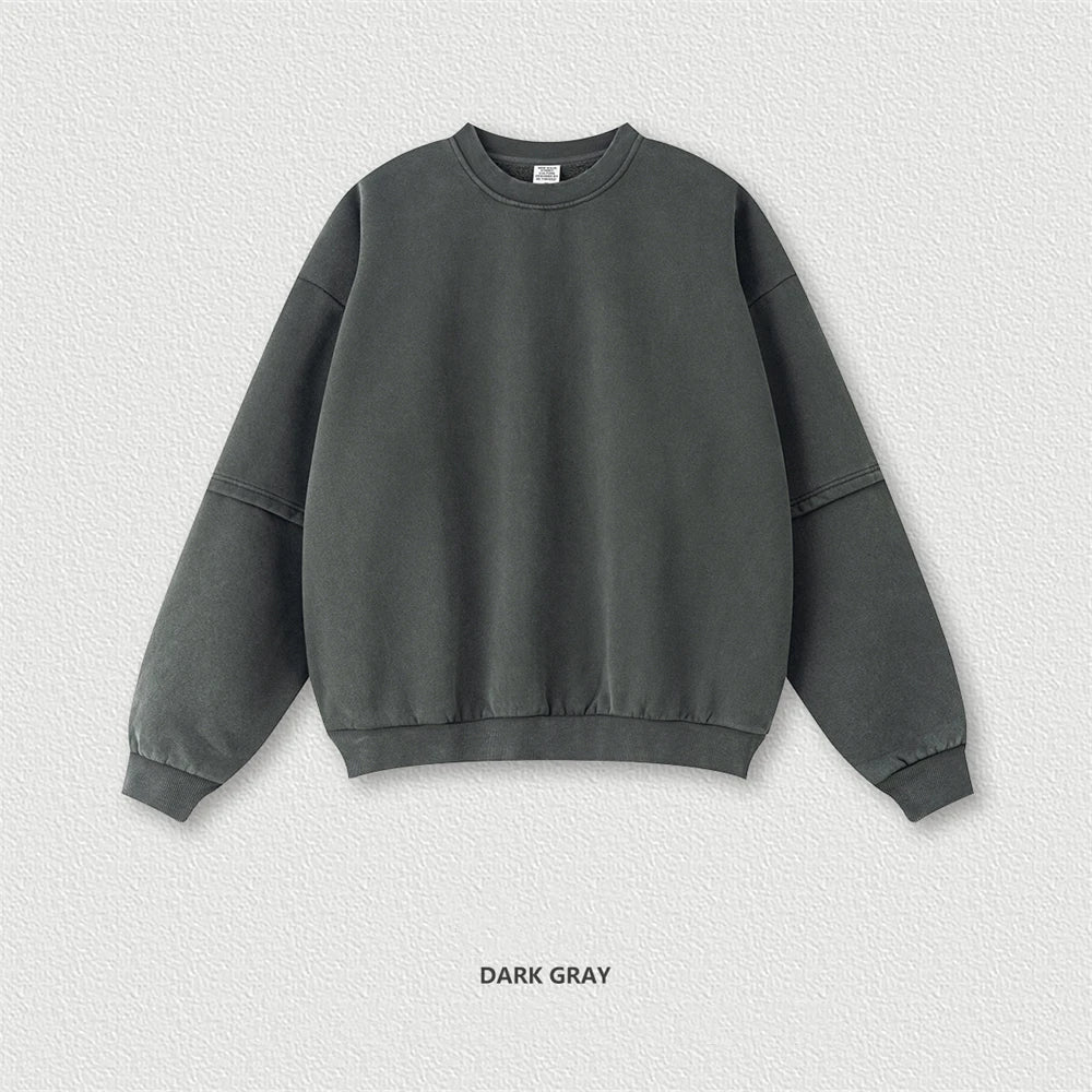 ZODF Trendy 2025 Winter Man 360gsm Washed Fleece Hoodies Unisex Patchwork Loose Fake 2 Pieces Knitted O Neck Sweatshirts HY1089