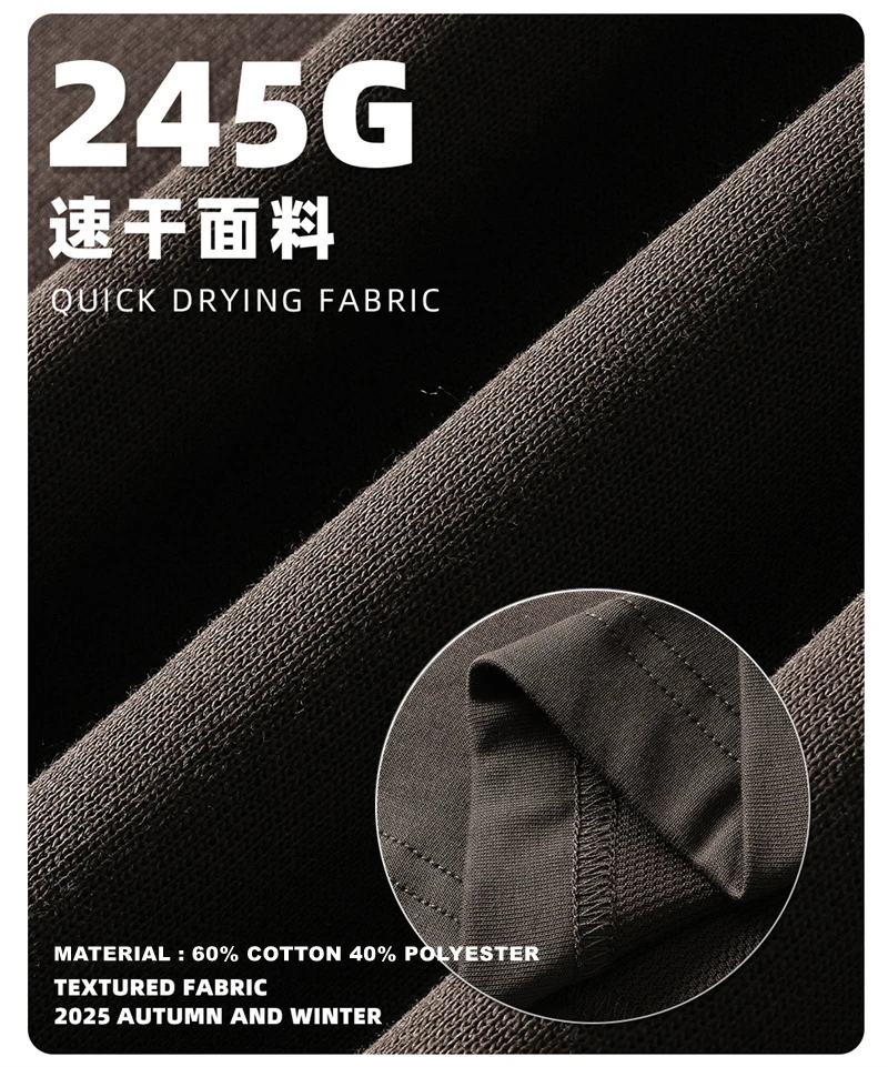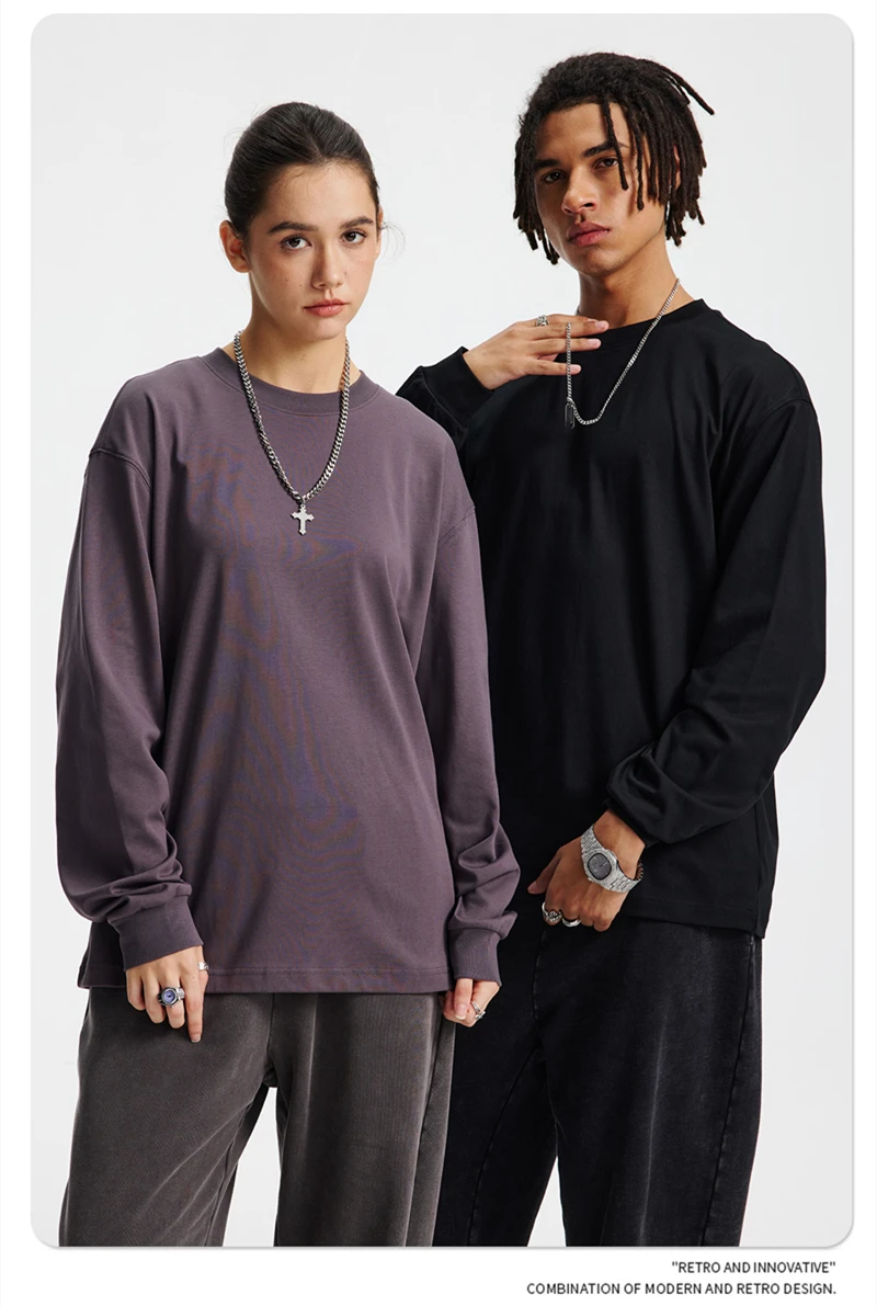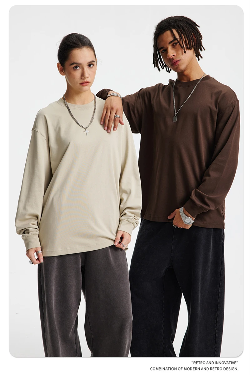 ZODF Trendy Autumn Full Sleeve 245gsm T-Shirts For Men Unisex Loose Solid Quick Dry Antibacterial T Shirt Brand Tees HY1162