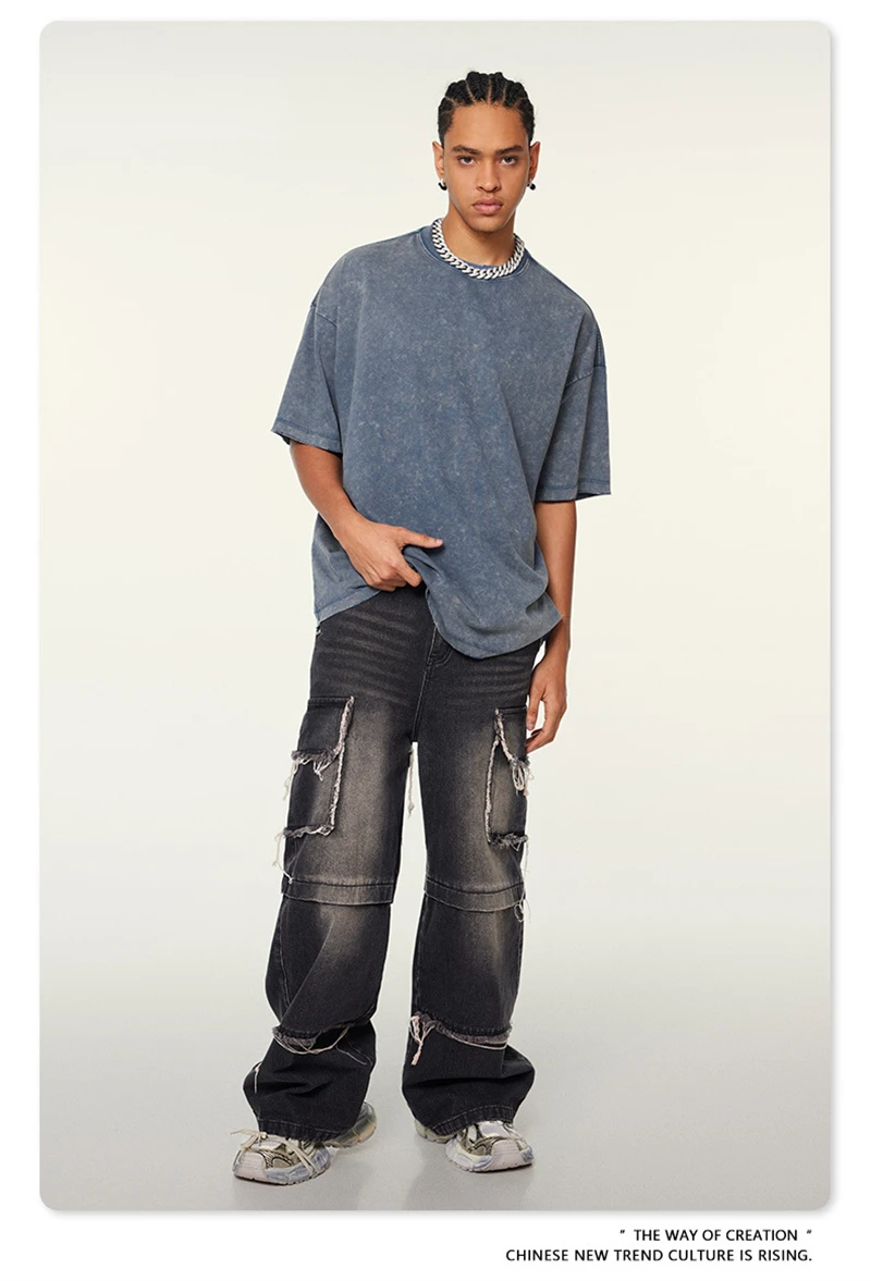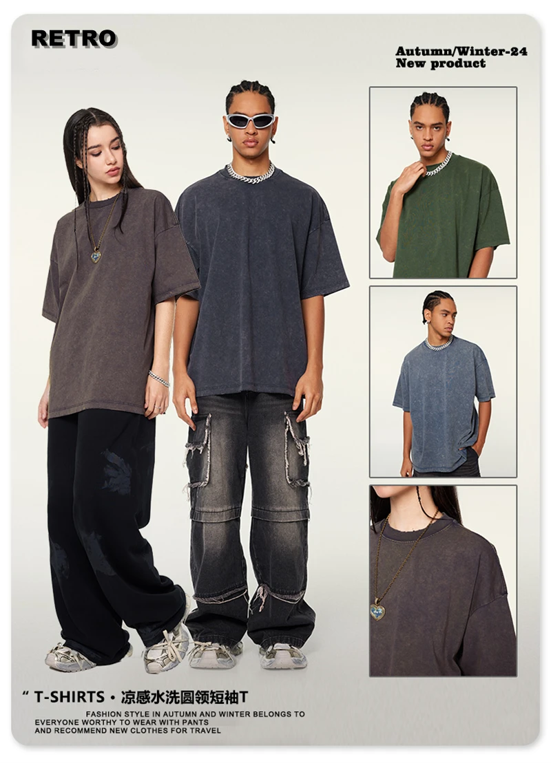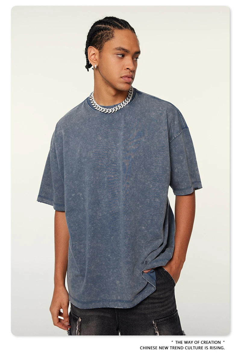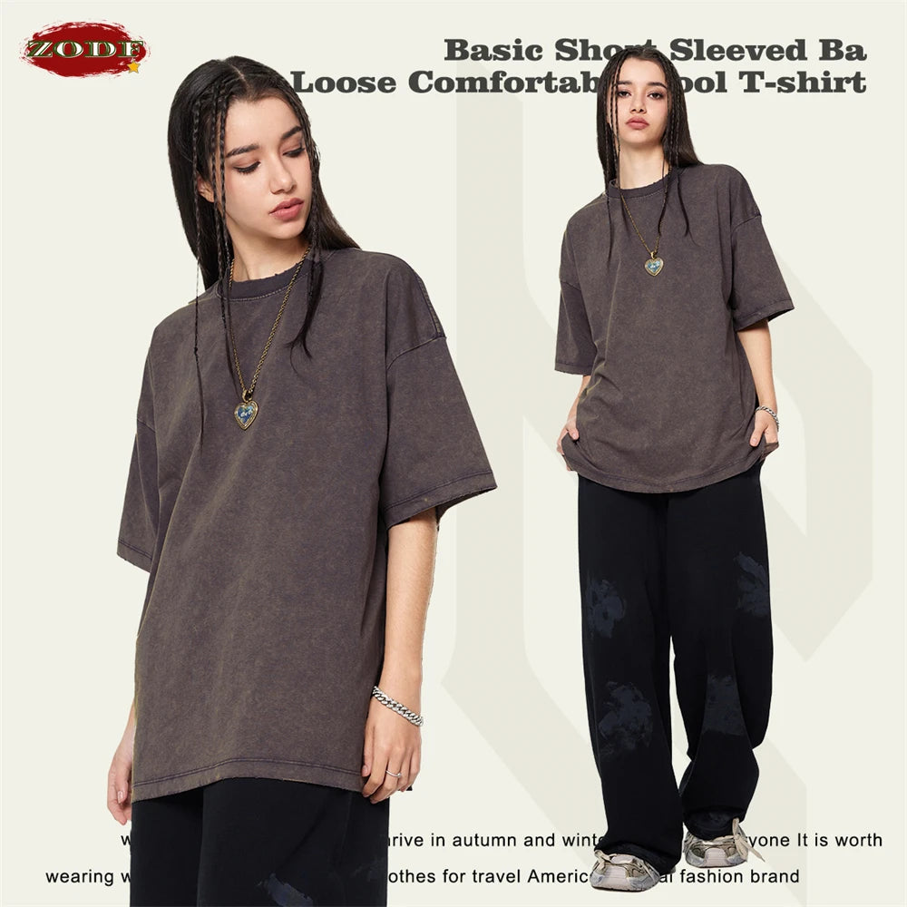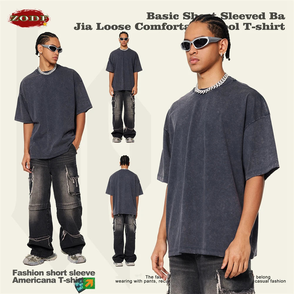 ZODF Vintage 2024 Summer Men Washed Solid 230gsm T-Shirts Unisex Ripped Breathable Quick Dry Cooling Feeling T Shirt Tees HY0801
