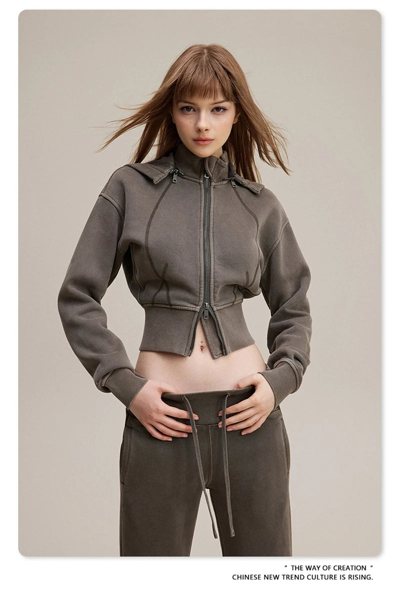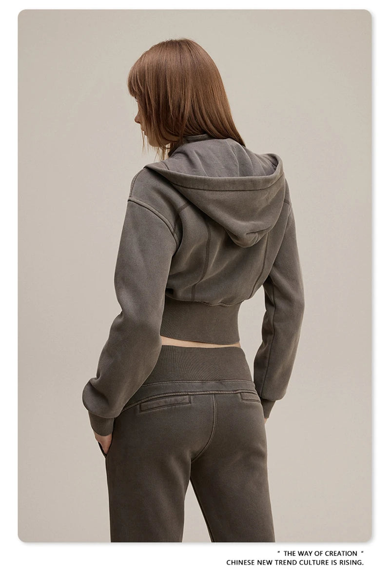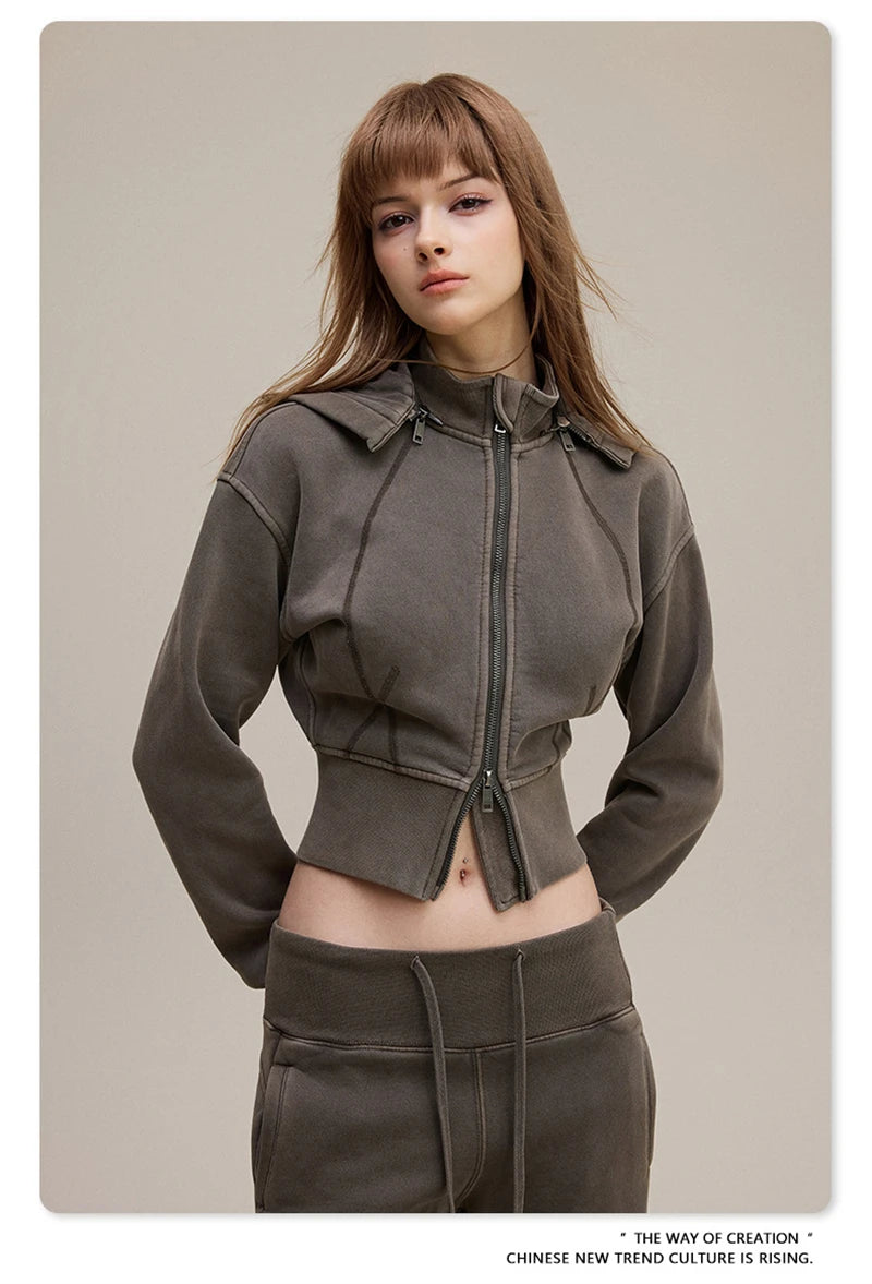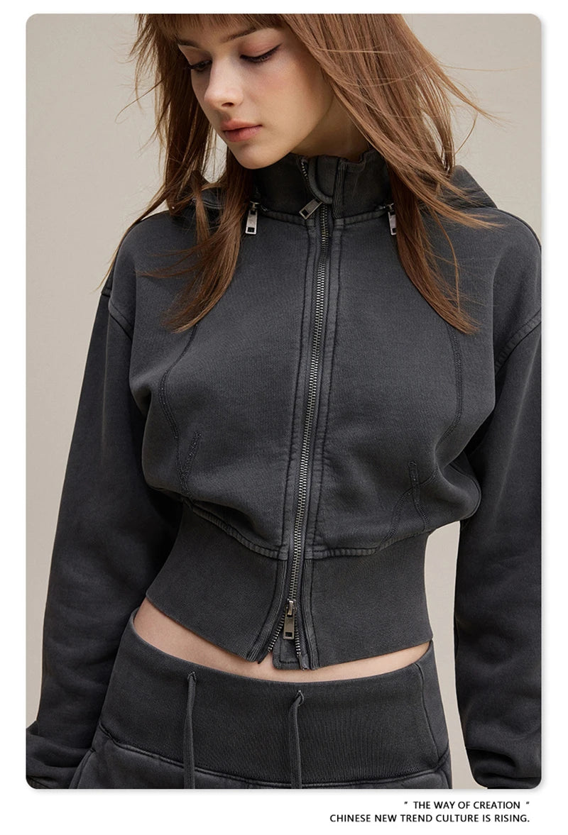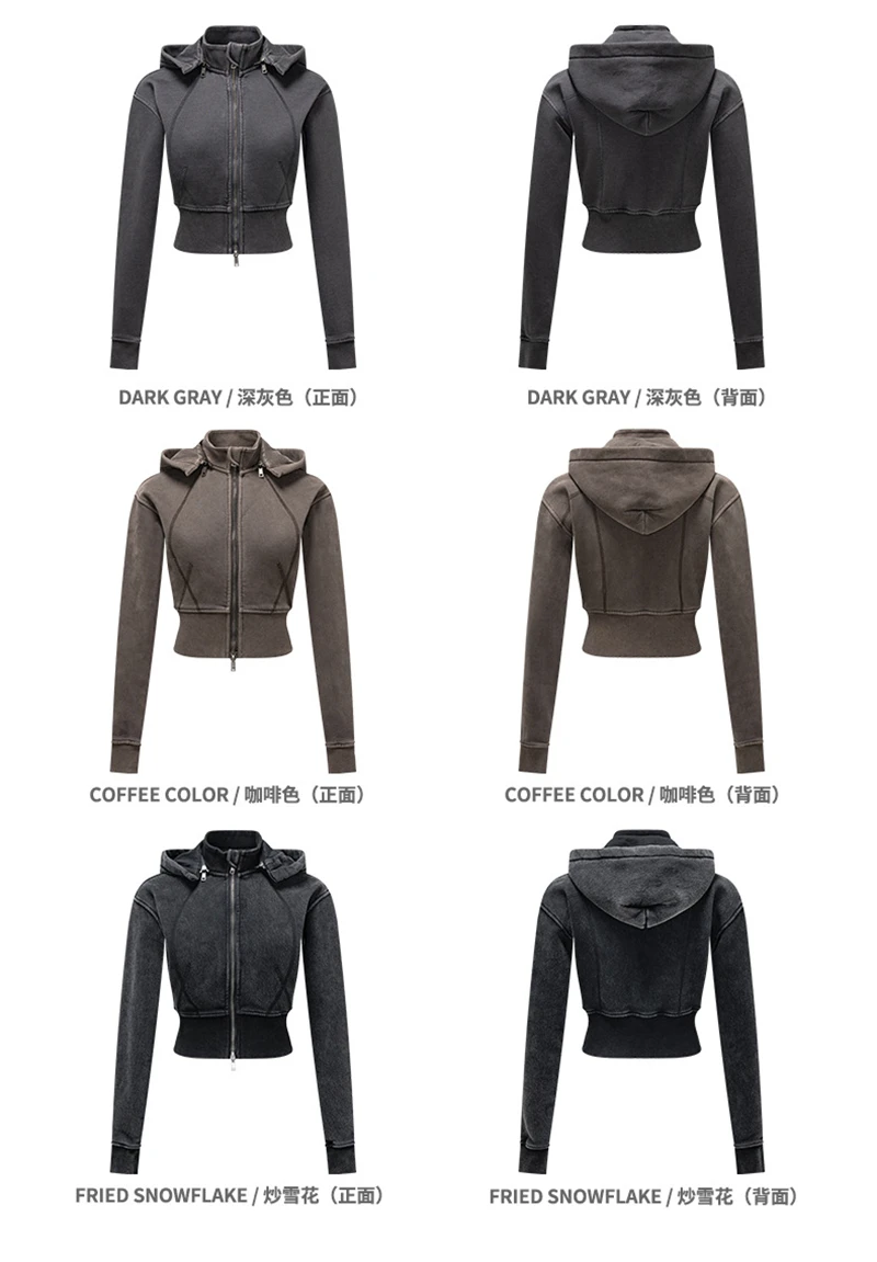 ZODF Vintage 2025 Winter Batik Washed Crop Hoodies Female Girls Remove Hood Heavy Weight Sport 400gsm Hooded Coat HY1085