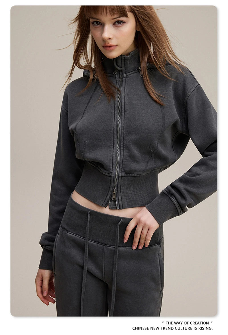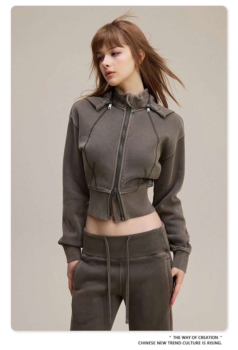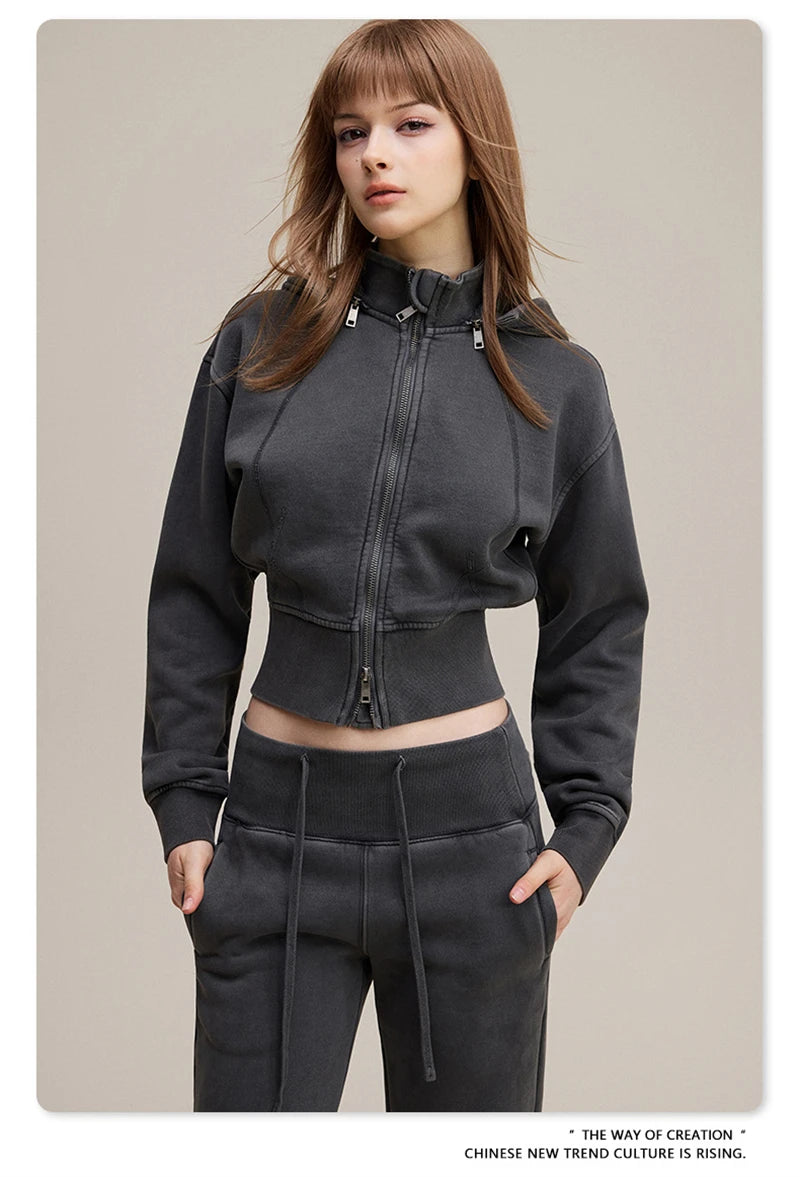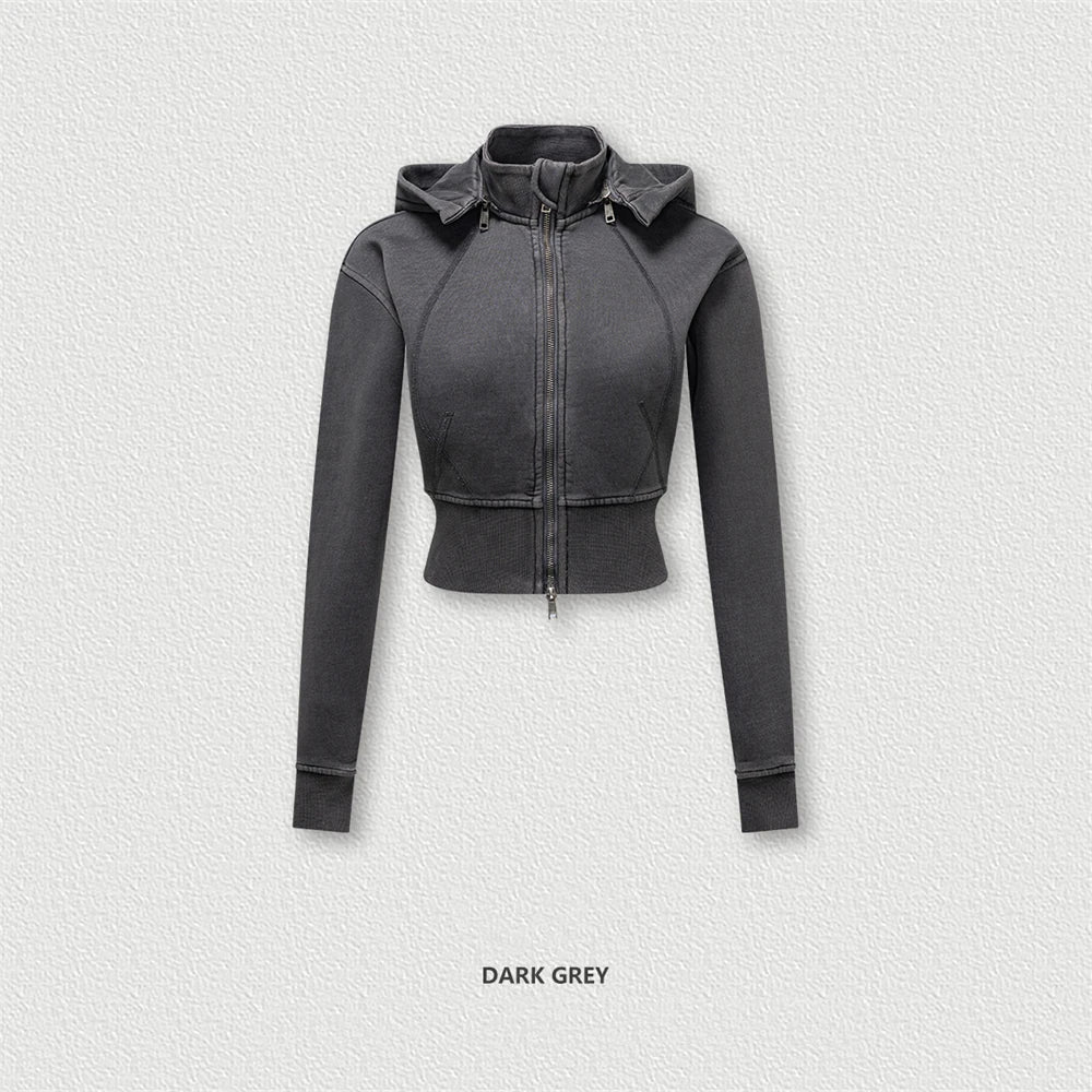 ZODF Vintage 2025 Winter Batik Washed Crop Hoodies Female Girls Remove Hood Heavy Weight Sport 400gsm Hooded Coat HY1085