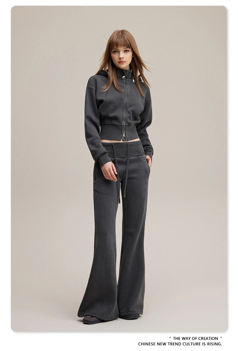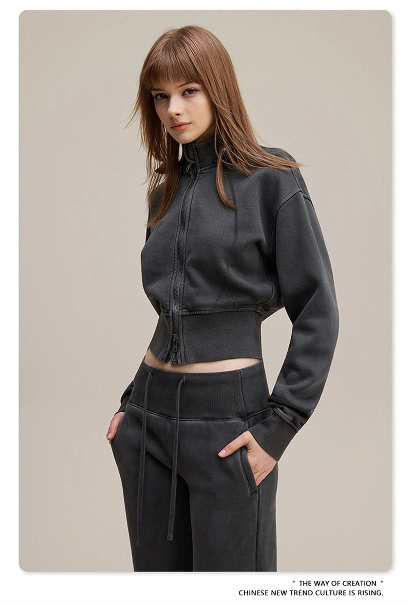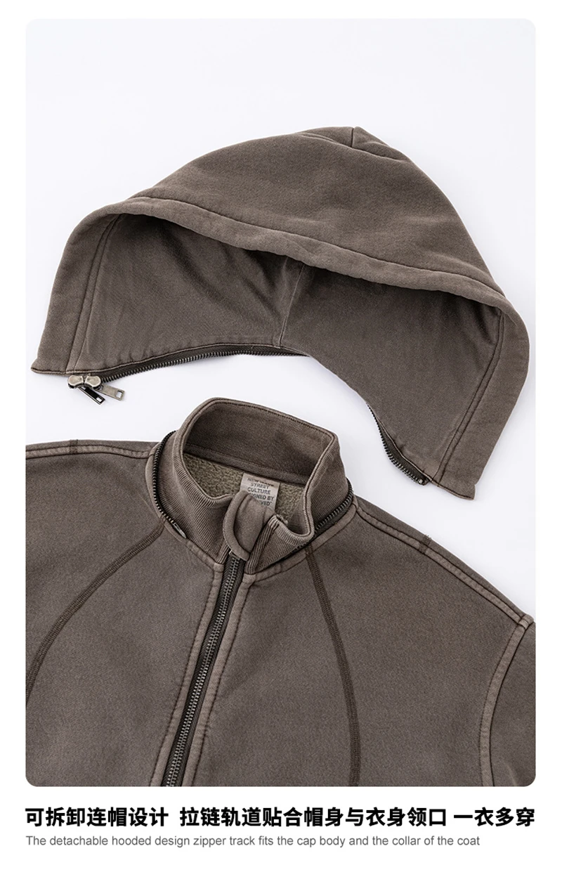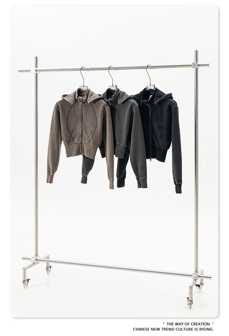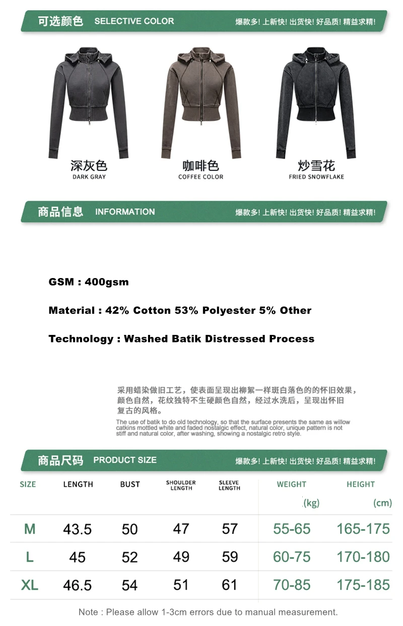 ZODF Vintage 2025 Winter Batik Washed Crop Hoodies Female Girls Remove Hood Heavy Weight Sport 400gsm Hooded Coat HY1085