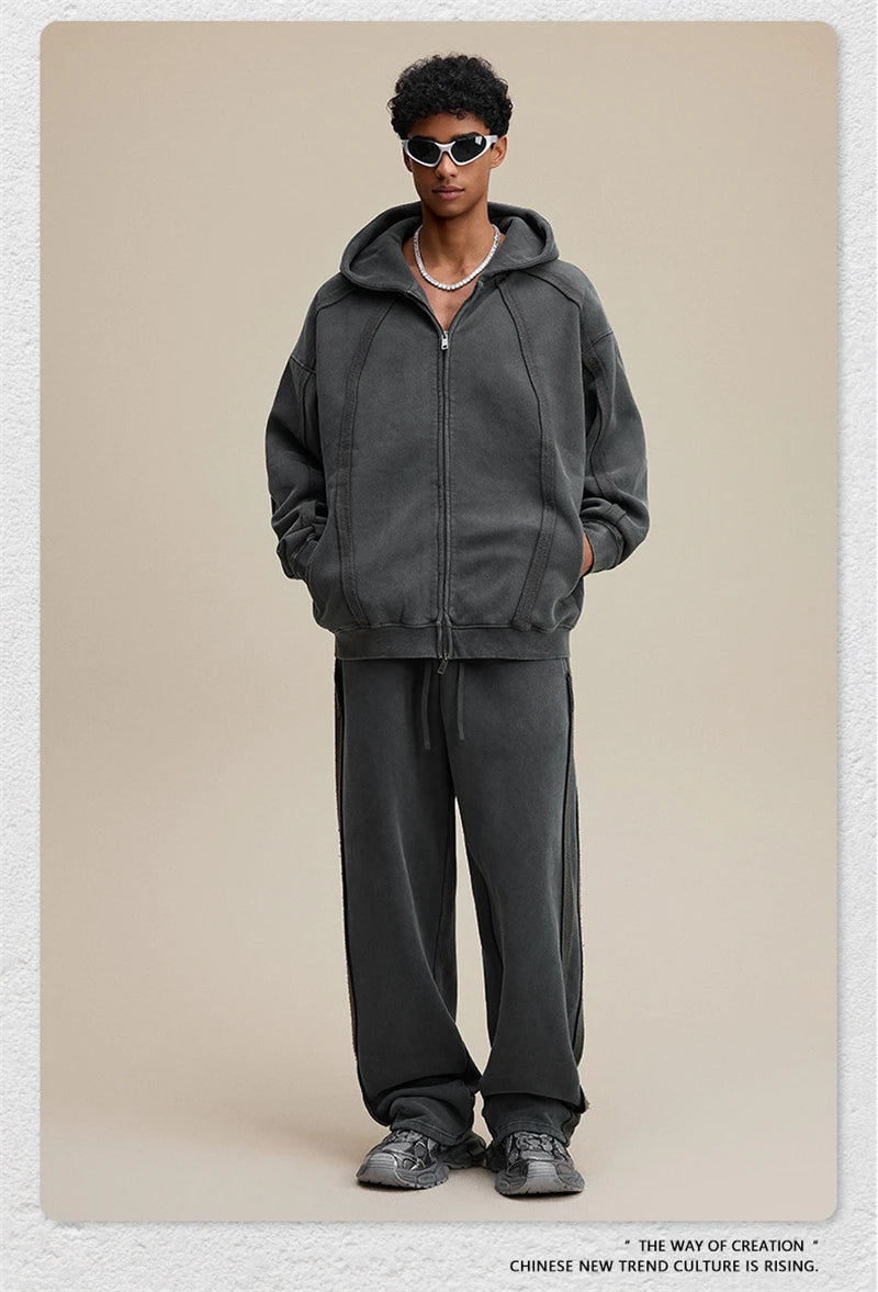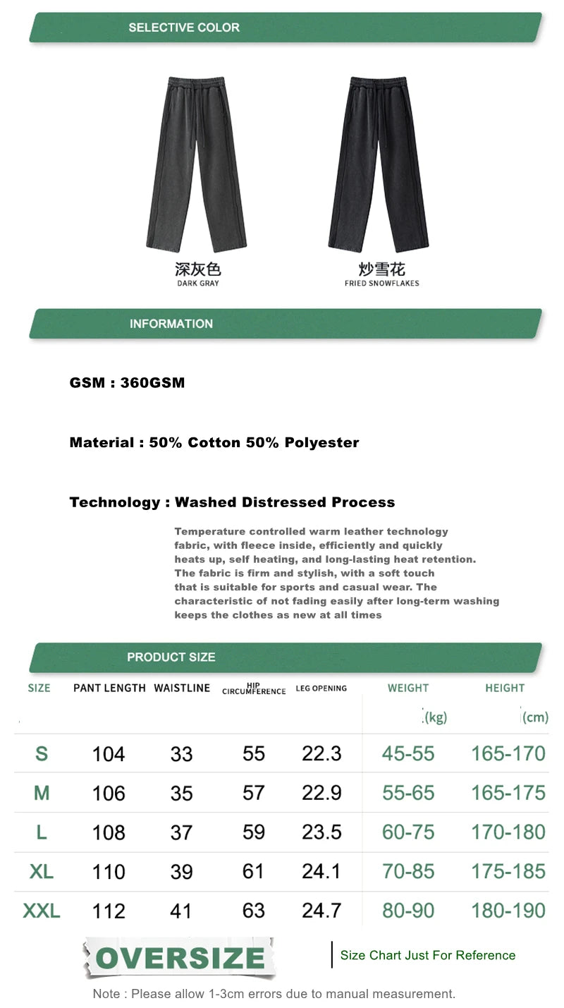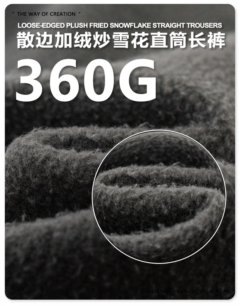 ZODF Vintage Man Winter Washed Fleece Straight Pants Unisex Distressed 360gsm Knitted Warm Trousers