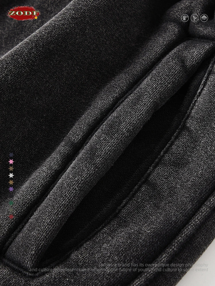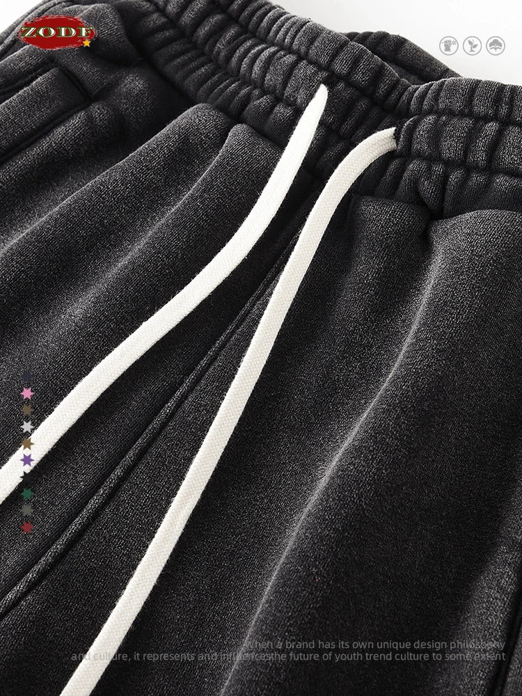 ZODF Vintage Men 360gsm Thick Fleece Sweatpants Women Unisex Loose Washed Distressed Warm Joggers Pants For Winter HY0749