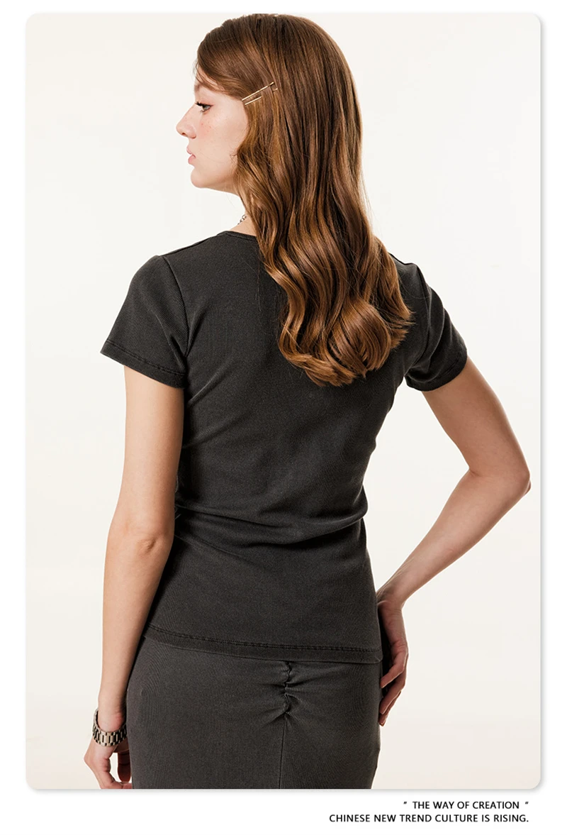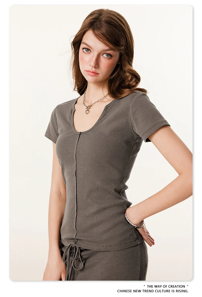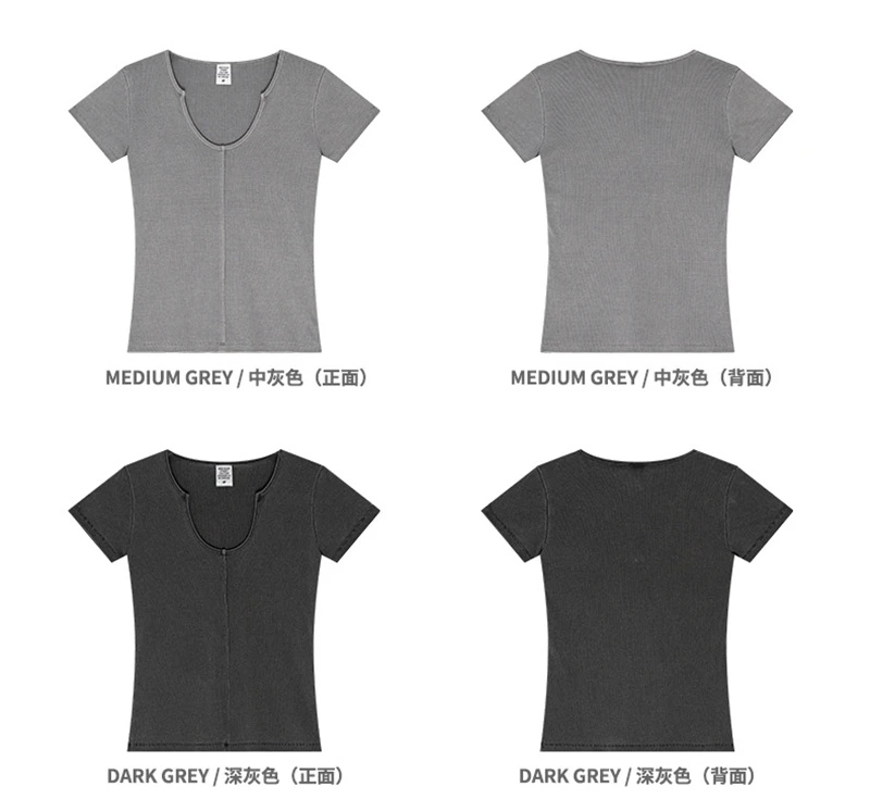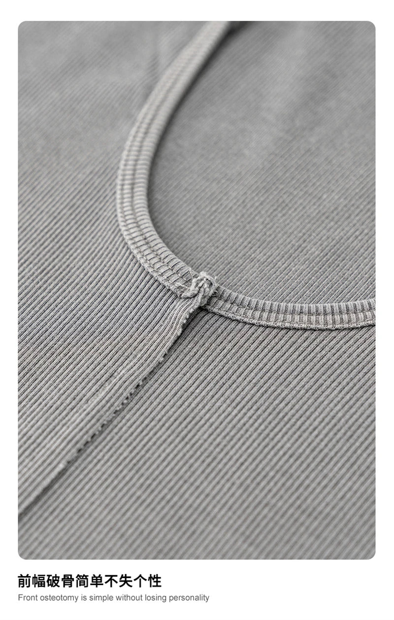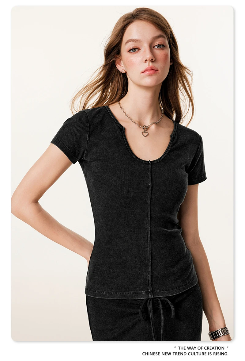 ZODF Women Retro 2025 Summer 275gsm U Collar Washed T-Shirts Hotsweet Girls Sexy Slim Fit T Shirt Brand Tees HY0992