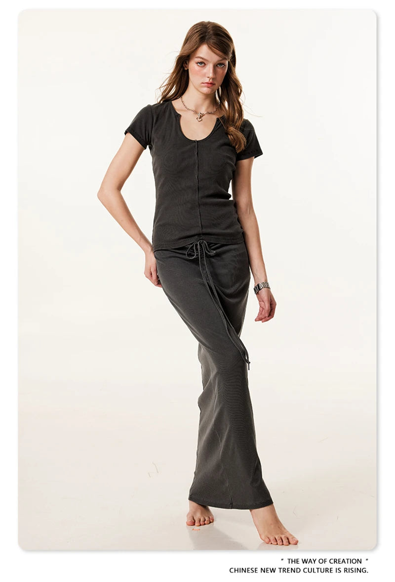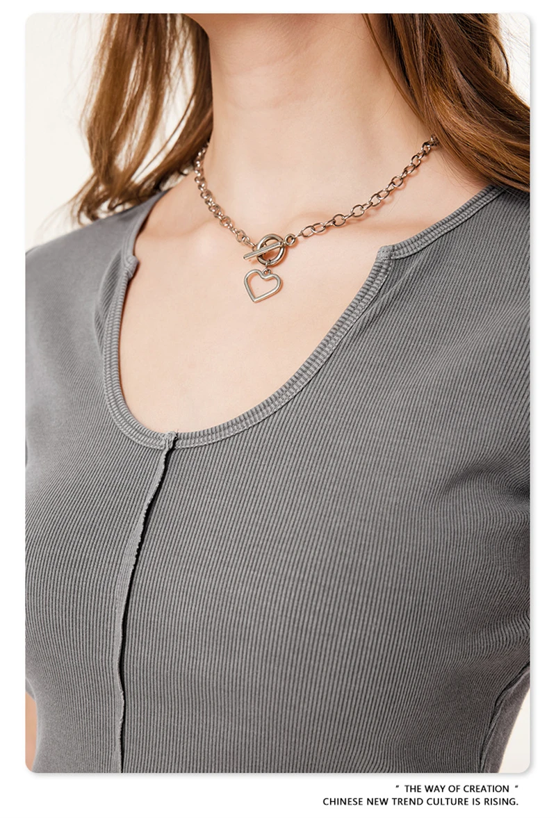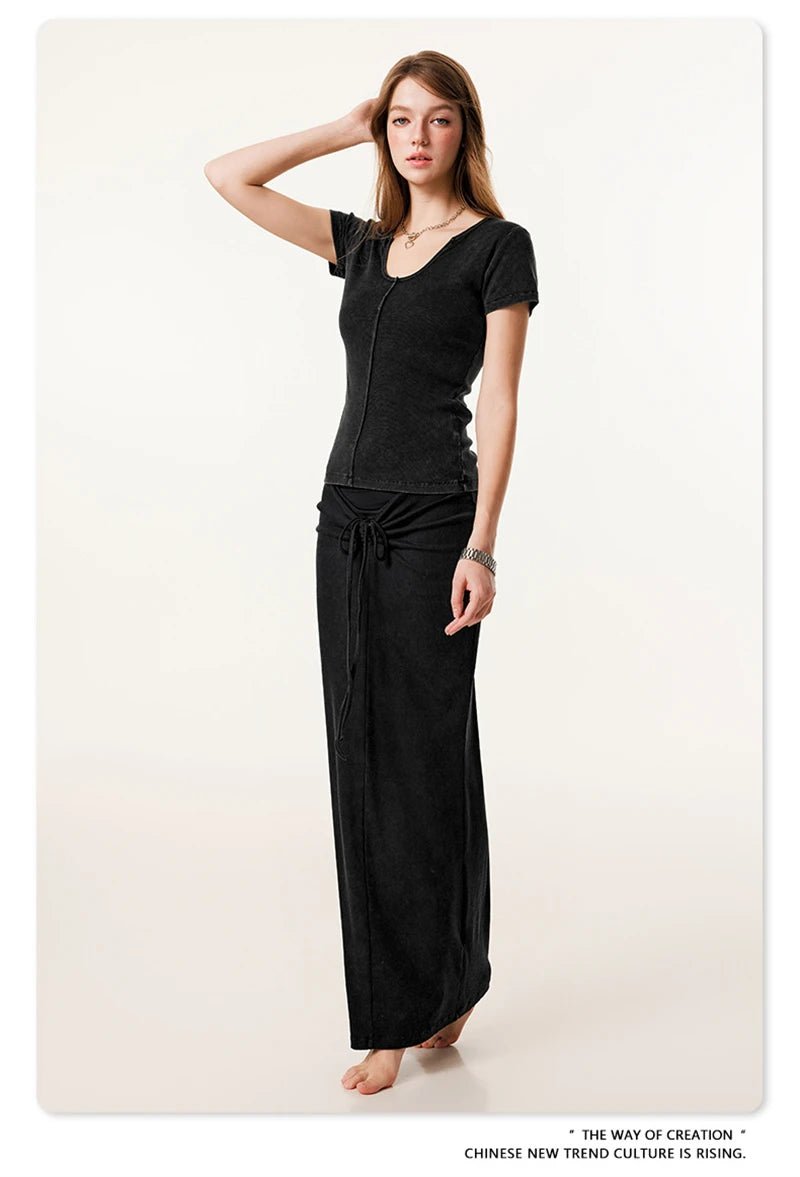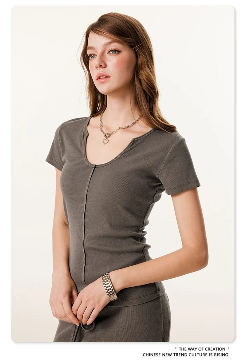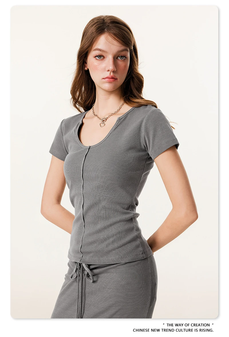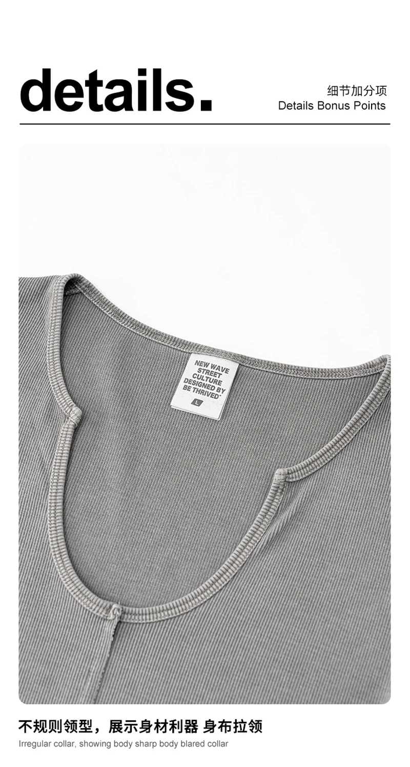 ZODF Women Retro 2025 Summer 275gsm U Collar Washed T-Shirts Hotsweet Girls Sexy Slim Fit T Shirt Brand Tees HY0992