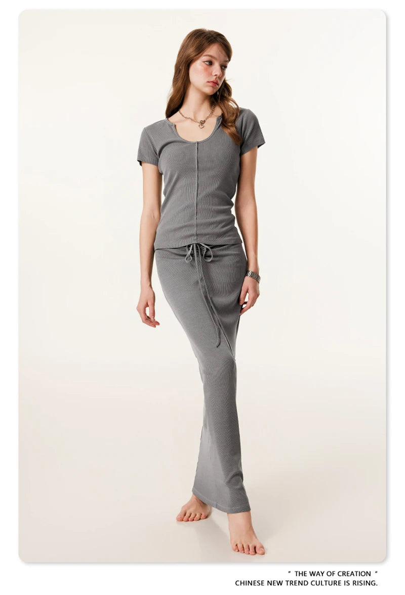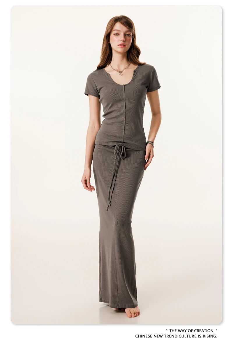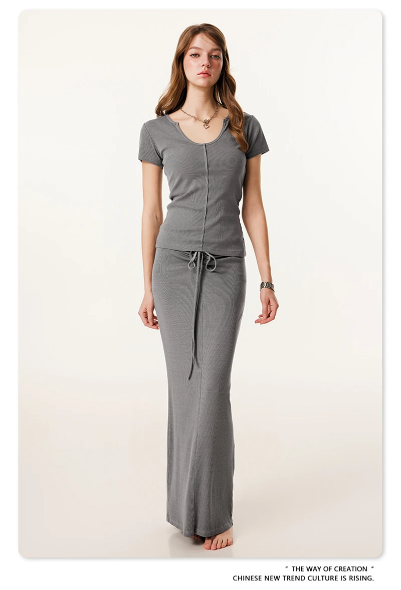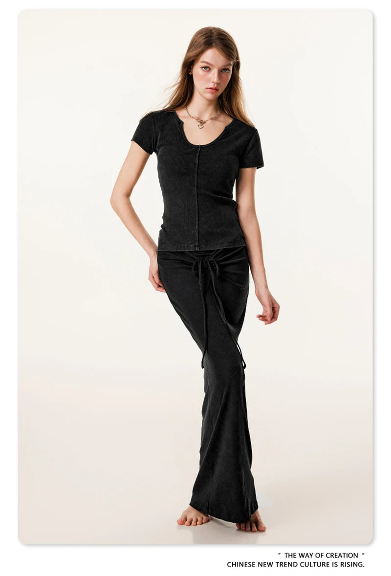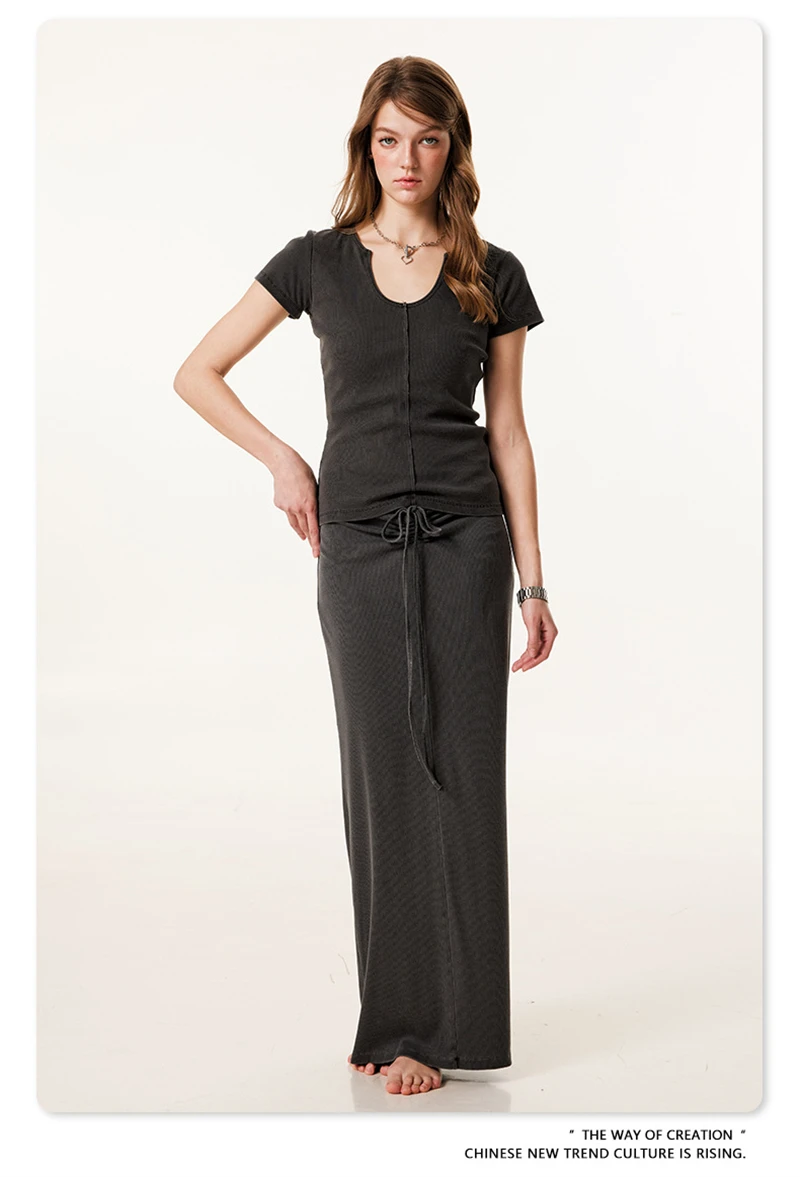 ZODF Women Retro 2025 Summer 275gsm U Collar Washed T-Shirts Hotsweet Girls Sexy Slim Fit T Shirt Brand Tees HY0992